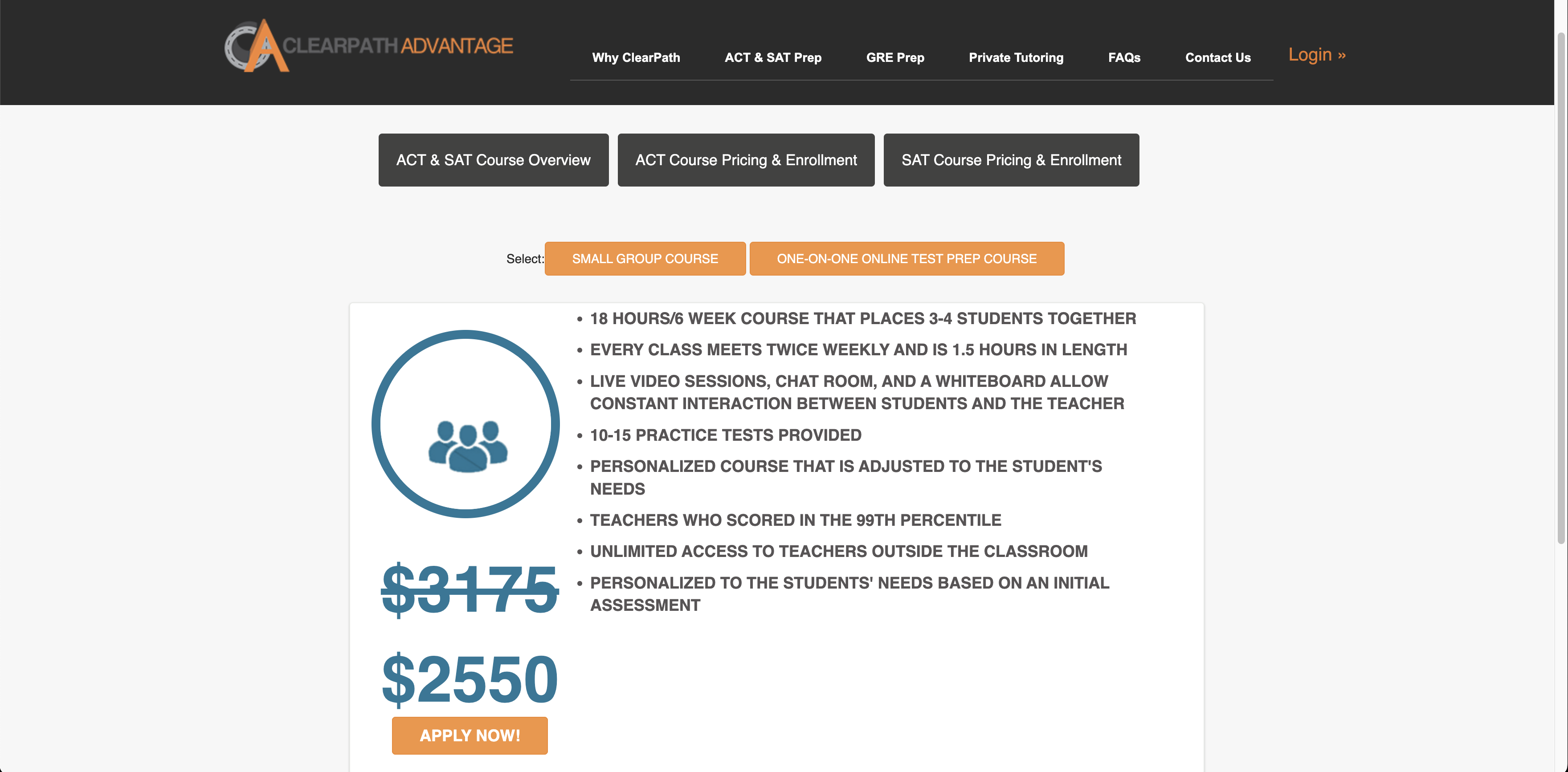 ClearPath Advantage is a Chicago-based educational company that approaches test prep with the idea that no two students are alike. Their ACT prep program focuses on small group classes with 3-4 students, and 1:1 tutoring, to ensure that students get the individualized attention they need. While not as well-known as some companies on our list, like Kaplan or Magoosh, ClearPath Advantage landed a spot on our list as a solid option for students needing personalized support.