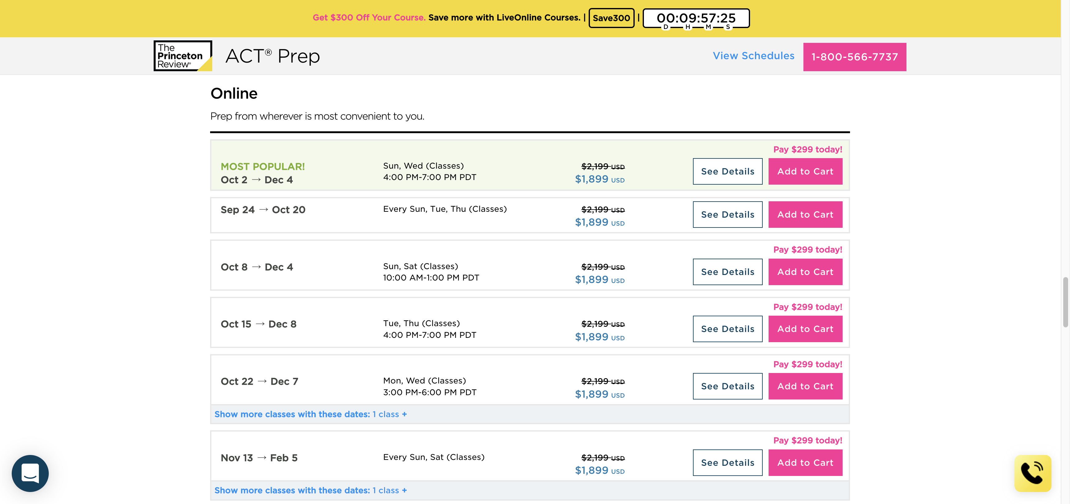 | Instructor Led Classes + Complete Online ACT Prep | $895 | Everything in the Complete Online ACT Prep course, plus: