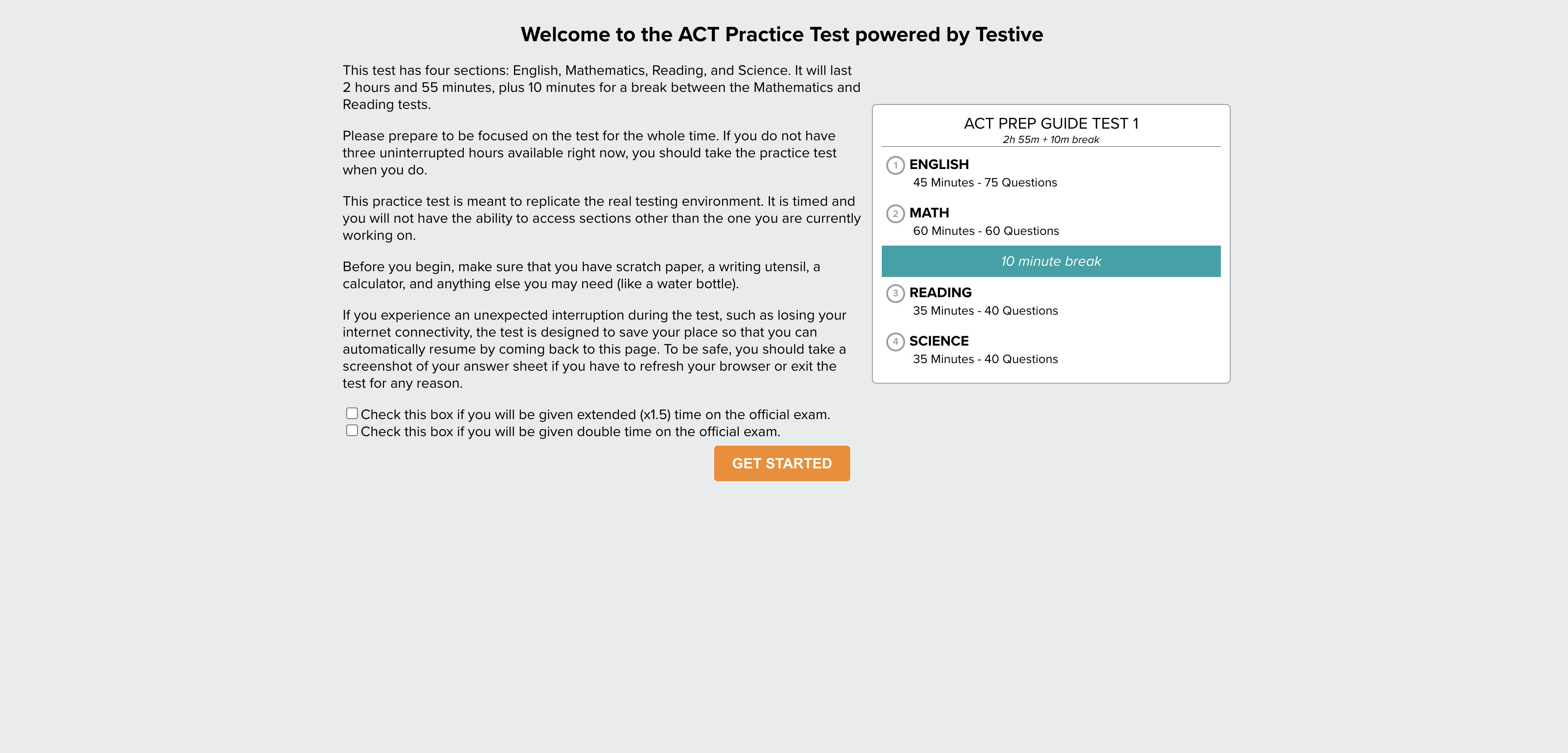 ACT practice tests can help students familiarize themselves with the format, content, and time limitations of the actual ACT test. Many ACT prep courses include practice exams. However, all students can access free subject-specific practice tests on the ACT website. Students receive instant feedback on these practice questions, including explanations for incorrect answers. The ACT also offers a free test prep guide with a full-length practice exam.