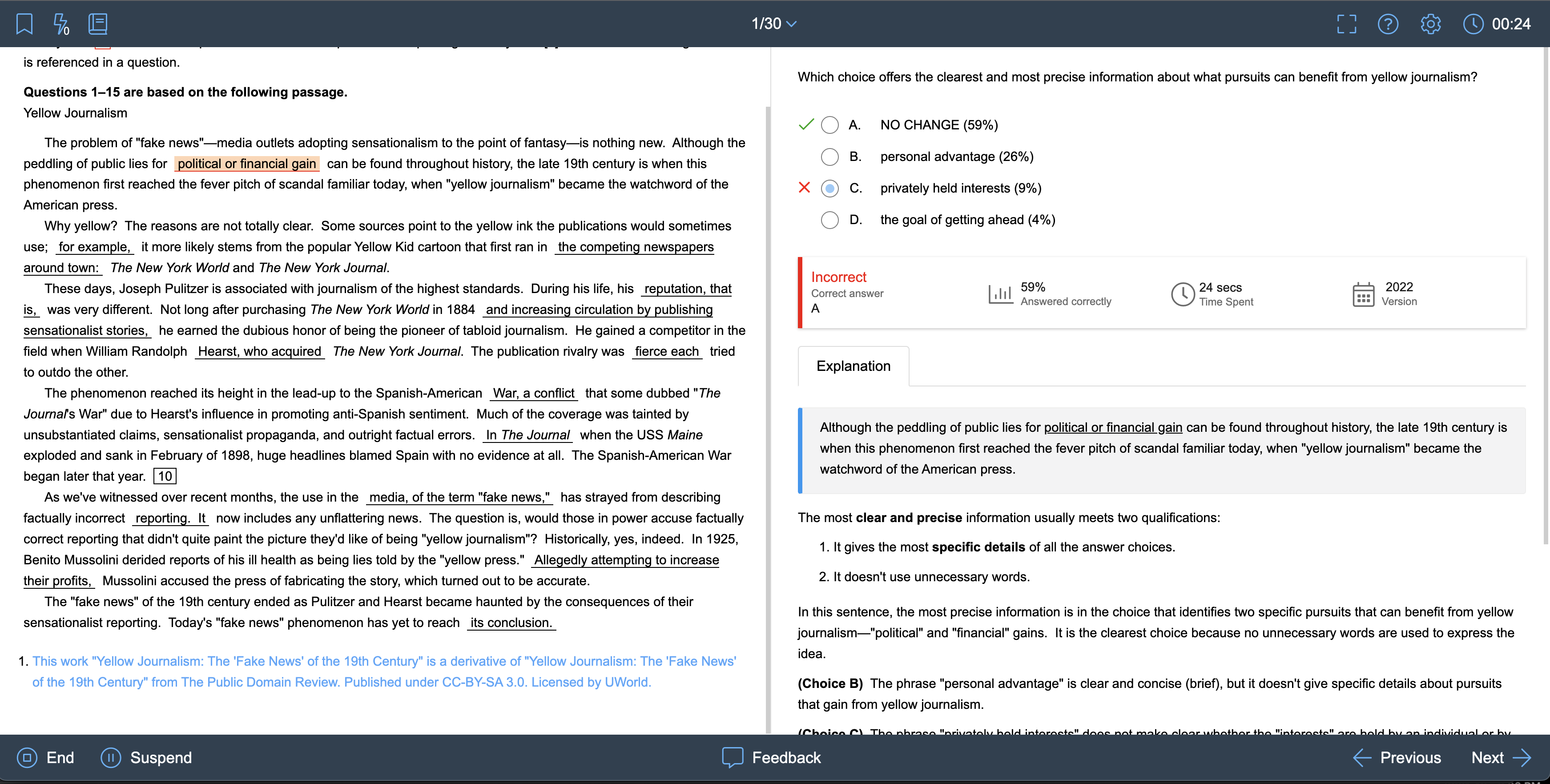 uWorld is a new addition to our list after our research found it’s a popular ACT prep option among recent ACT test-takers. Like Prep Expert and PrepScholar, uWorld College Prep was founded by an educator, Dr. Chandra Pemmasani, seeking a better way to prepare for standardized tests. uWorld’s ACT prep focuses on question drills and practice exams to cement content knowledge and helps students feel as prepared as possible for the test.