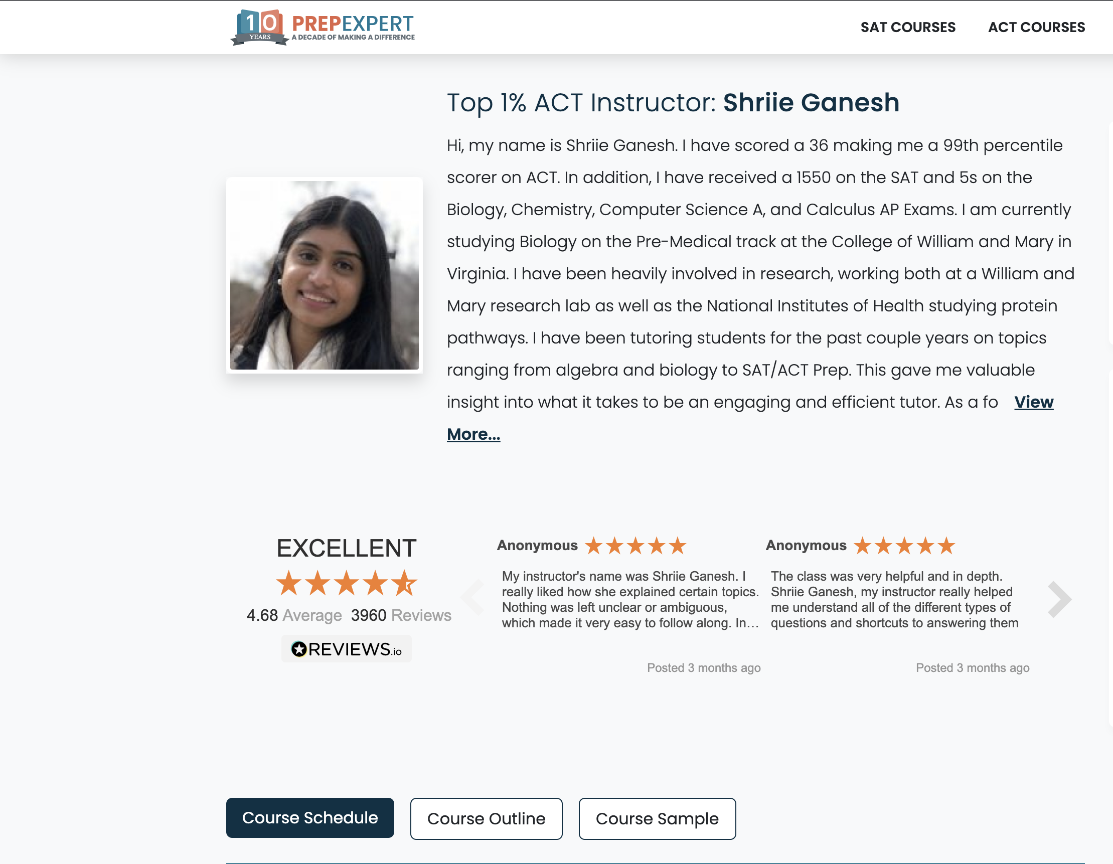 PrepScholar’s average rating is 4.5 / 5 on Trustpilot and 4.6 / 5 on Facebook Reviews. Many users report score improvements after completing a PrepScholar ACT course. Said one parent, “PrepScholar’s ACT program is well structured to build and master the skills. Putting in the recommended hours of practice with focused effort would yield good results.”