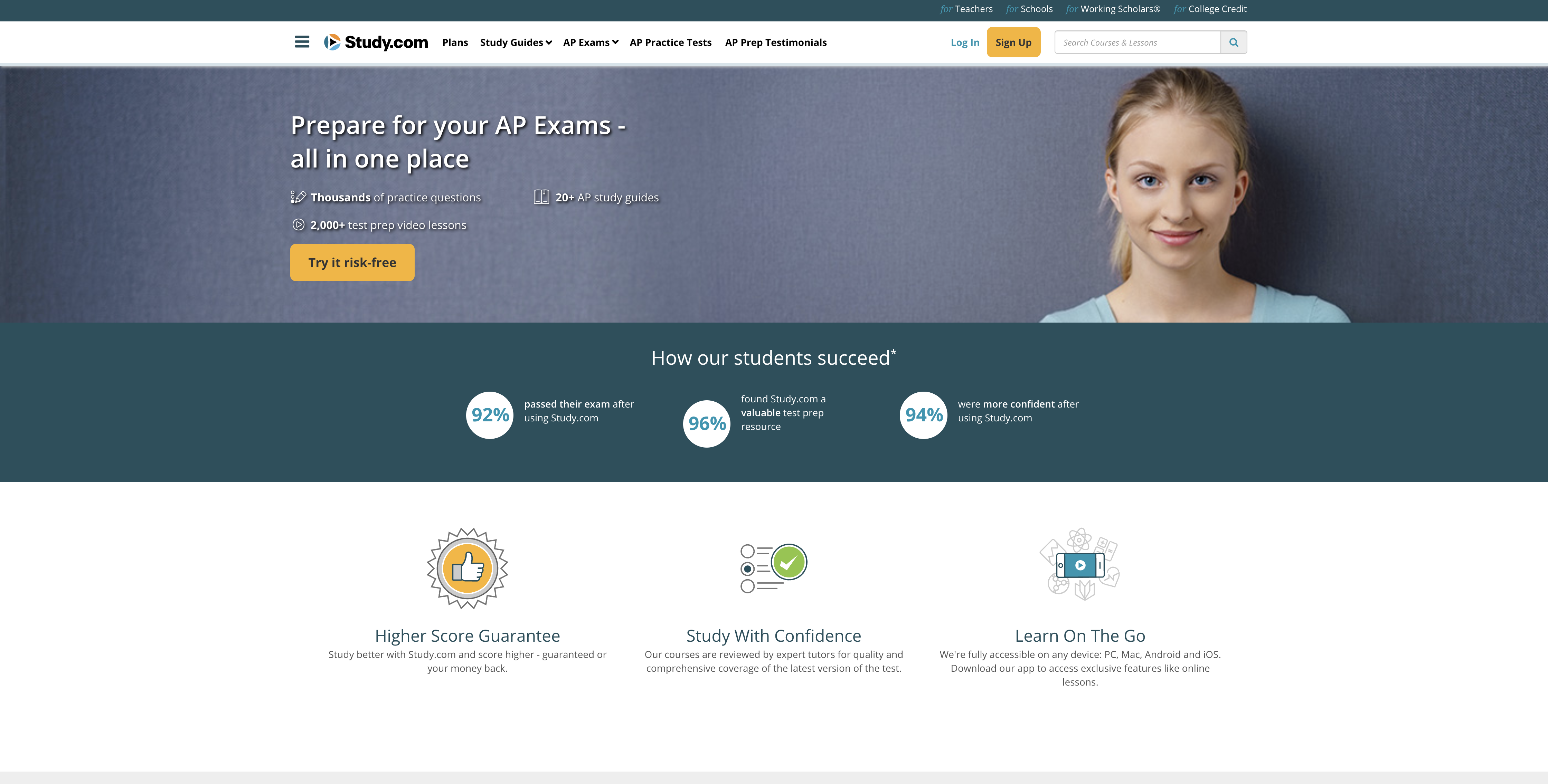 Study.com provides everything you need to do well on the AP exam, including an enormous question bank, thousands of video lessons, and plenty of study guides.
