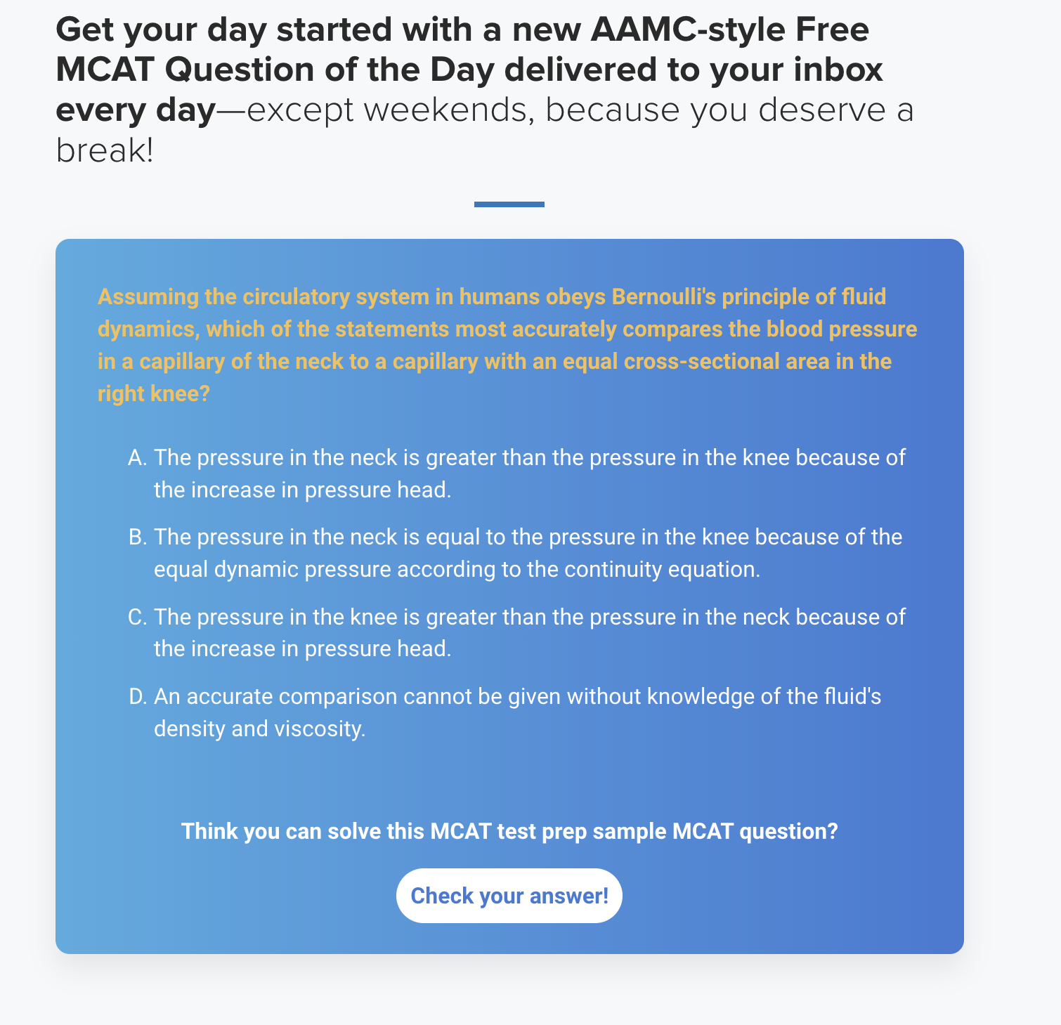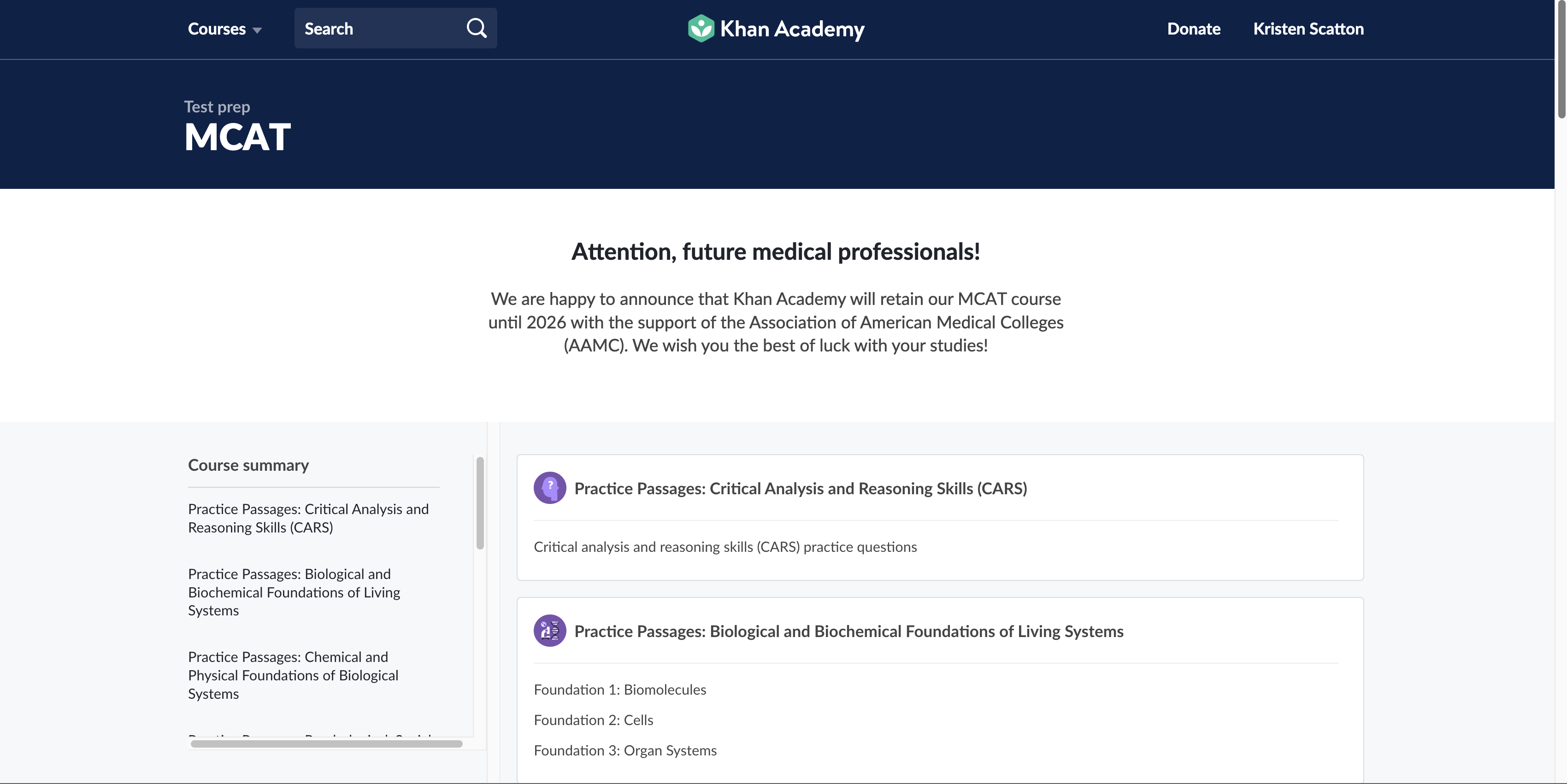 Despite being free, the quality of Khan Academy’s content is impressive, with thorough video lectures that cover all MCAT topics in detail. The platform also offers a wide range of practice questions and dedicated CARS practice passages, helping boost critical thinking and analytical skills.