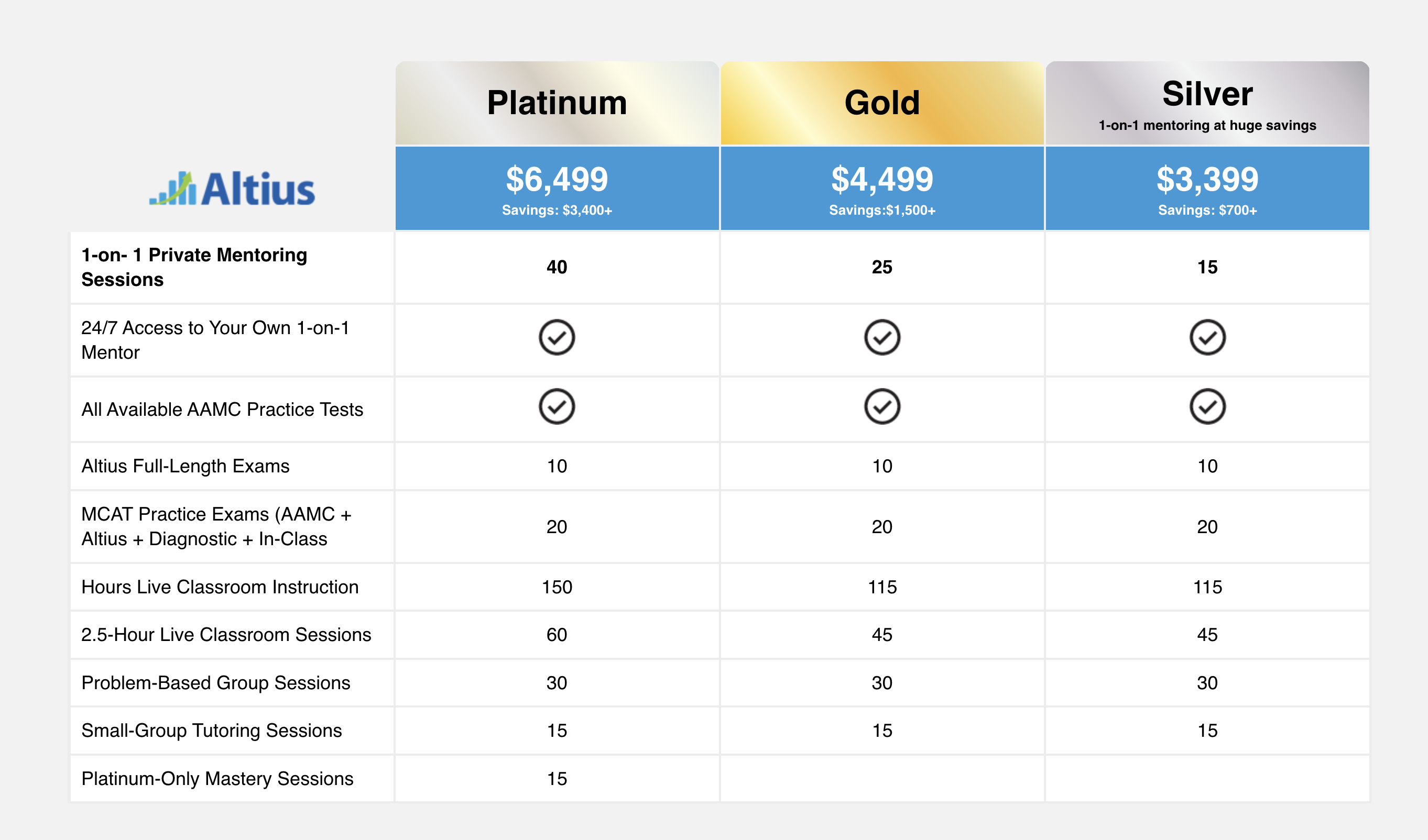 With private mentoring packages ranging from $3,699 to $6,499, Altius is one of the most expensive options for MCAT test prep. This will make it out of reach for some students.