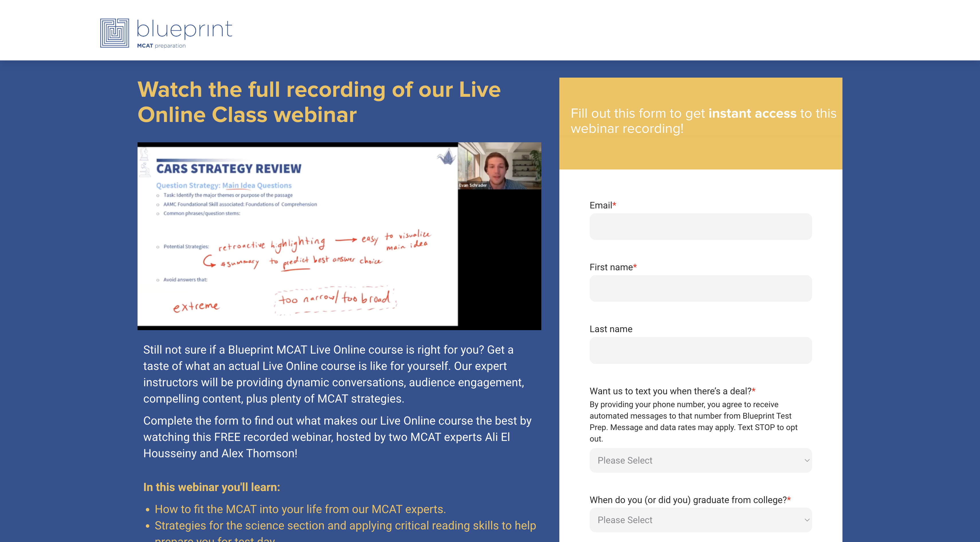 For students seeking a truly immersive live online MCAT prep experience, Blueprint may be your answer. The course combines live lessons from expert instructors with weekly review sessions for personalized support. But it doesn’t stop there. Those who enroll will also benefit from extensive resources like practice exams and a 5,000+ question bank, offering the ideal combination of guided learning and independent study.
