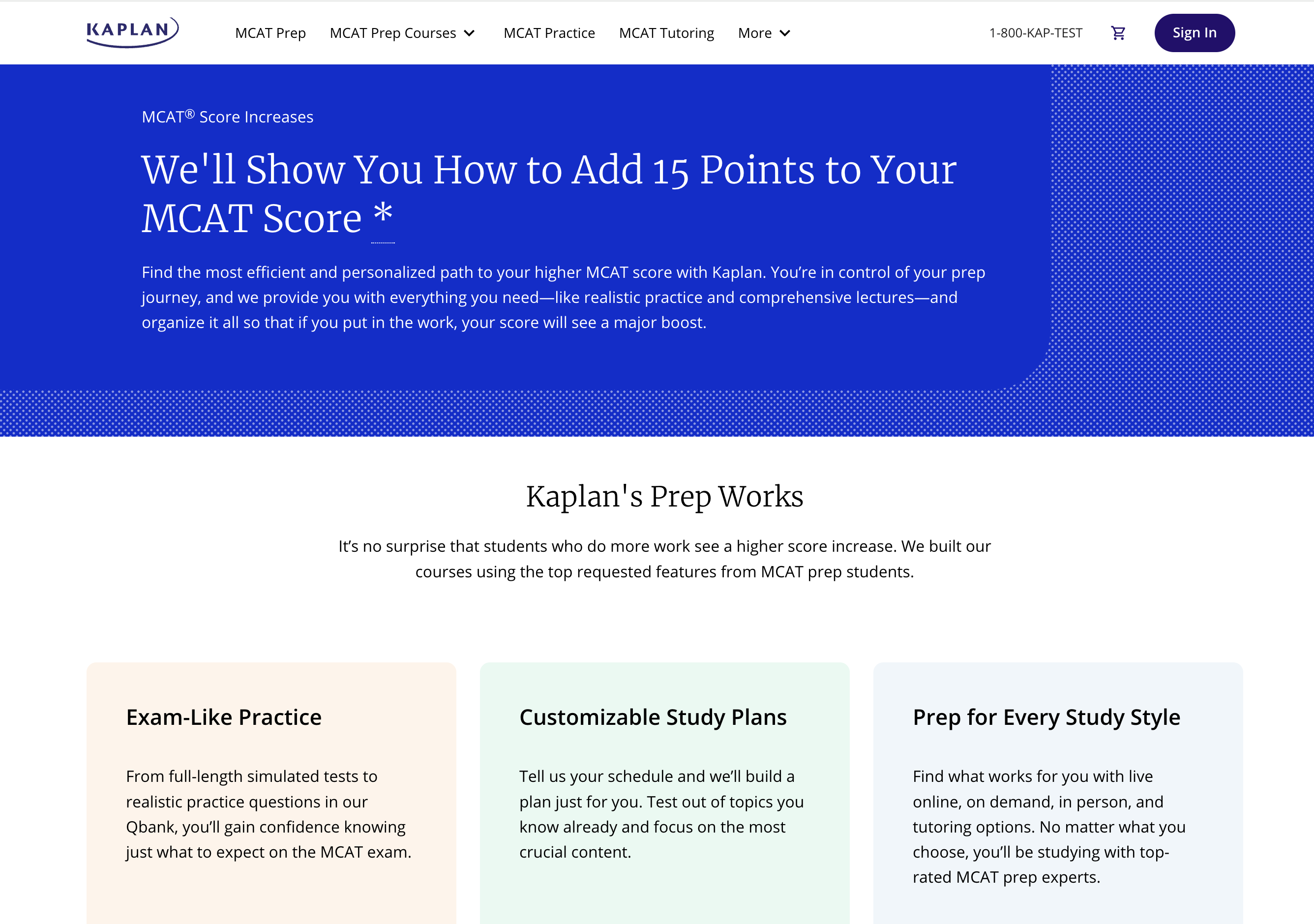 Kaplan is our top pick for MCAT test prep due to its flexible formats and comprehensive learning resources. With options ranging from self-paced study to live instruction and one-on-one tutoring, Kaplan caters to all learning styles. Their program includes 17 full-length practice tests, seven in-depth subject review books, and a 3,000+ question bank. Many courses also offer access to live instruction, with some providing two levels of tutoring support. All instructors are MCAT experts with scores of 520+, making Kaplan ideal for students seeking the best preparation possible.