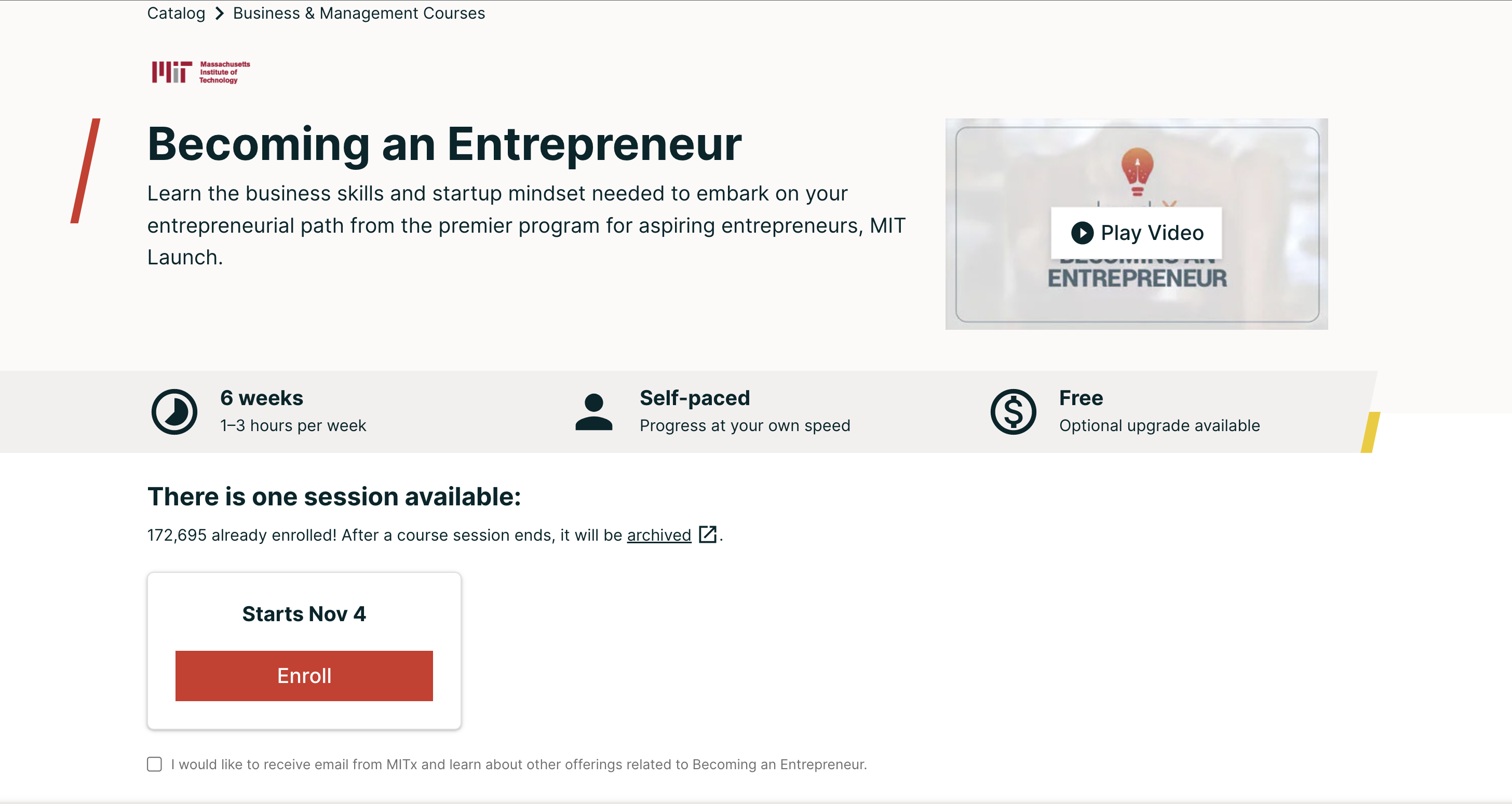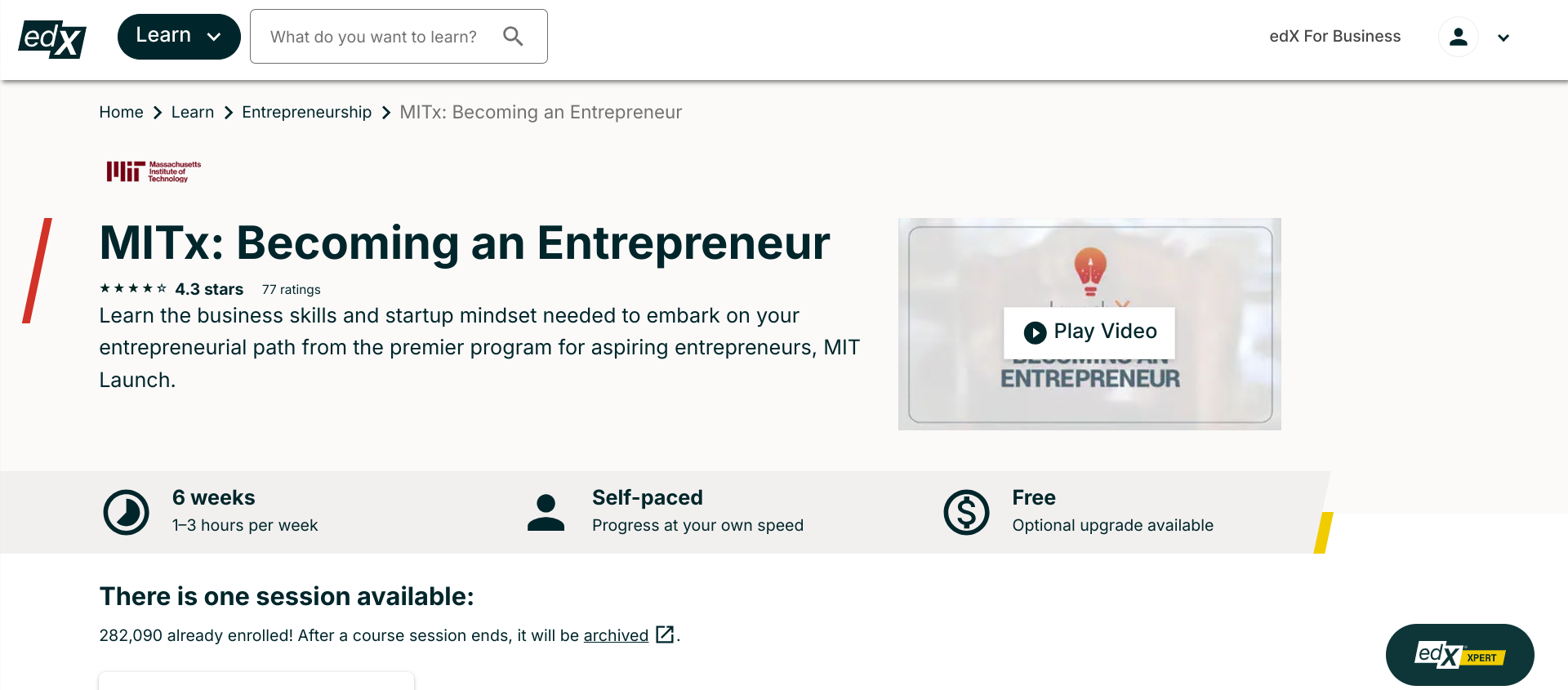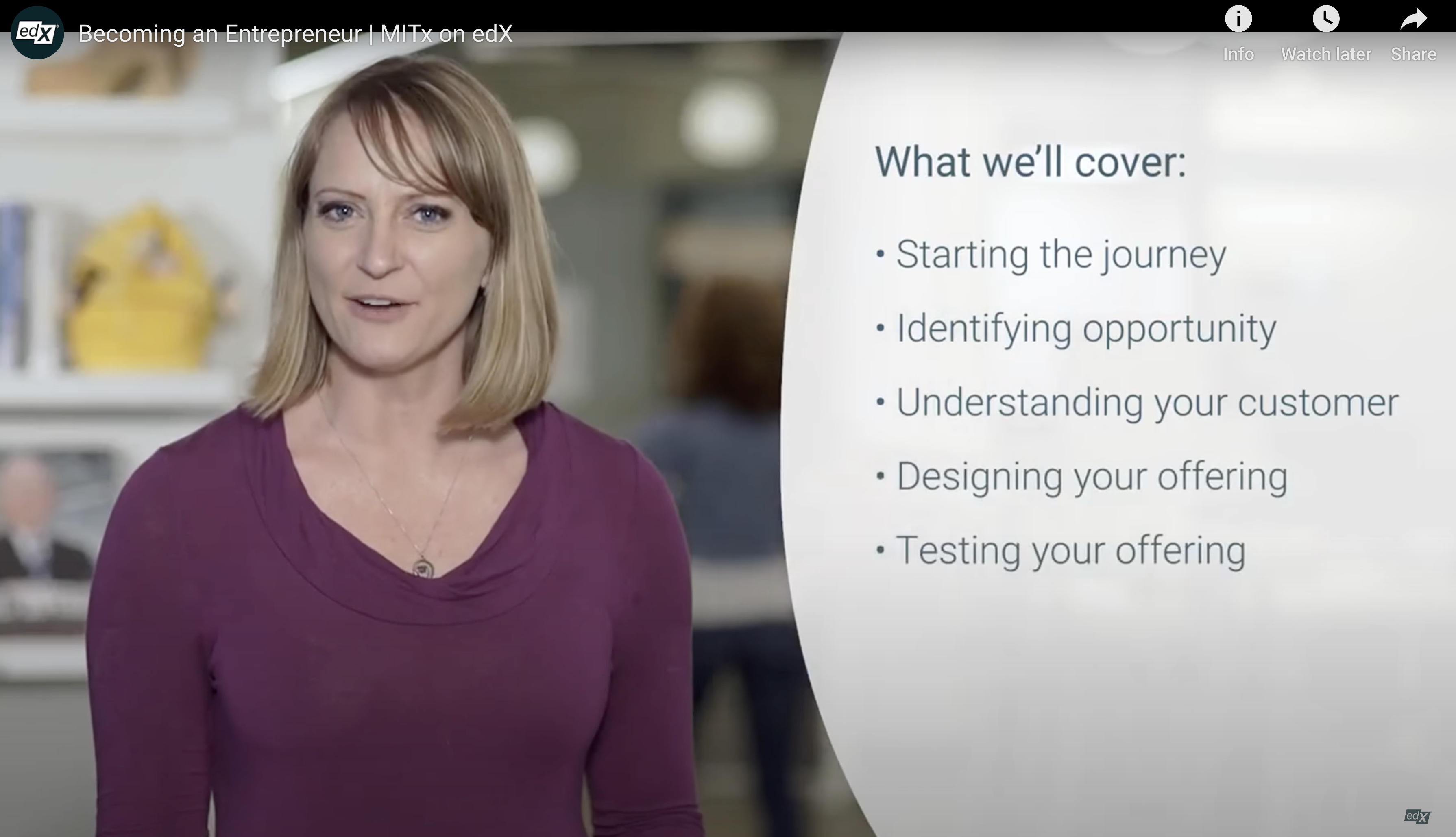 - Becoming an Entrepreneur – MIT via edX – Best for Entrepreneurs