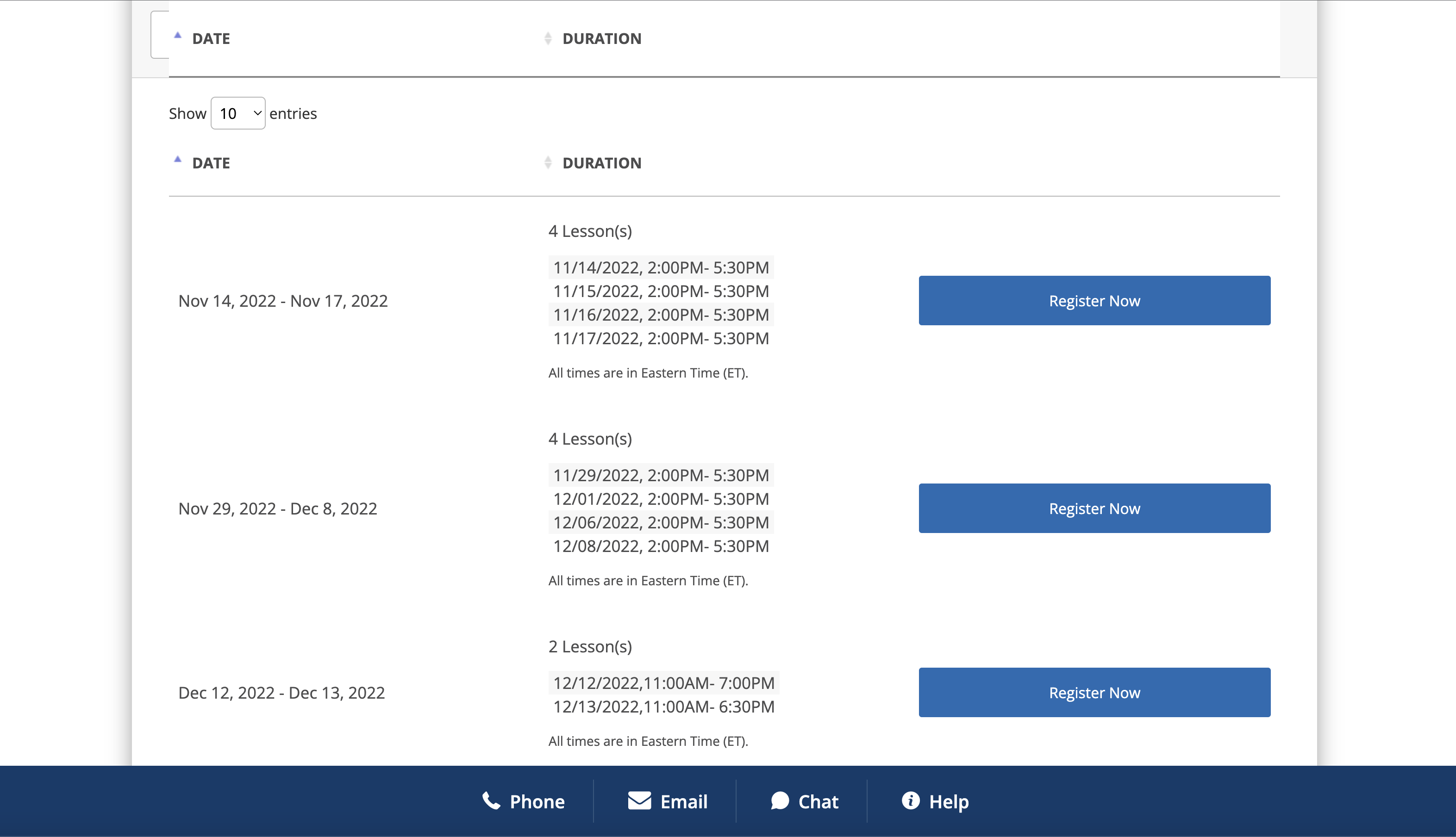 This curriculum is designed for maximum flexibility, with 100% online courses that students can start immediately upon enrollment. Students can work at their own pace; those who complete about 10 hours’ worth of work per week can expect to complete the course in six months.