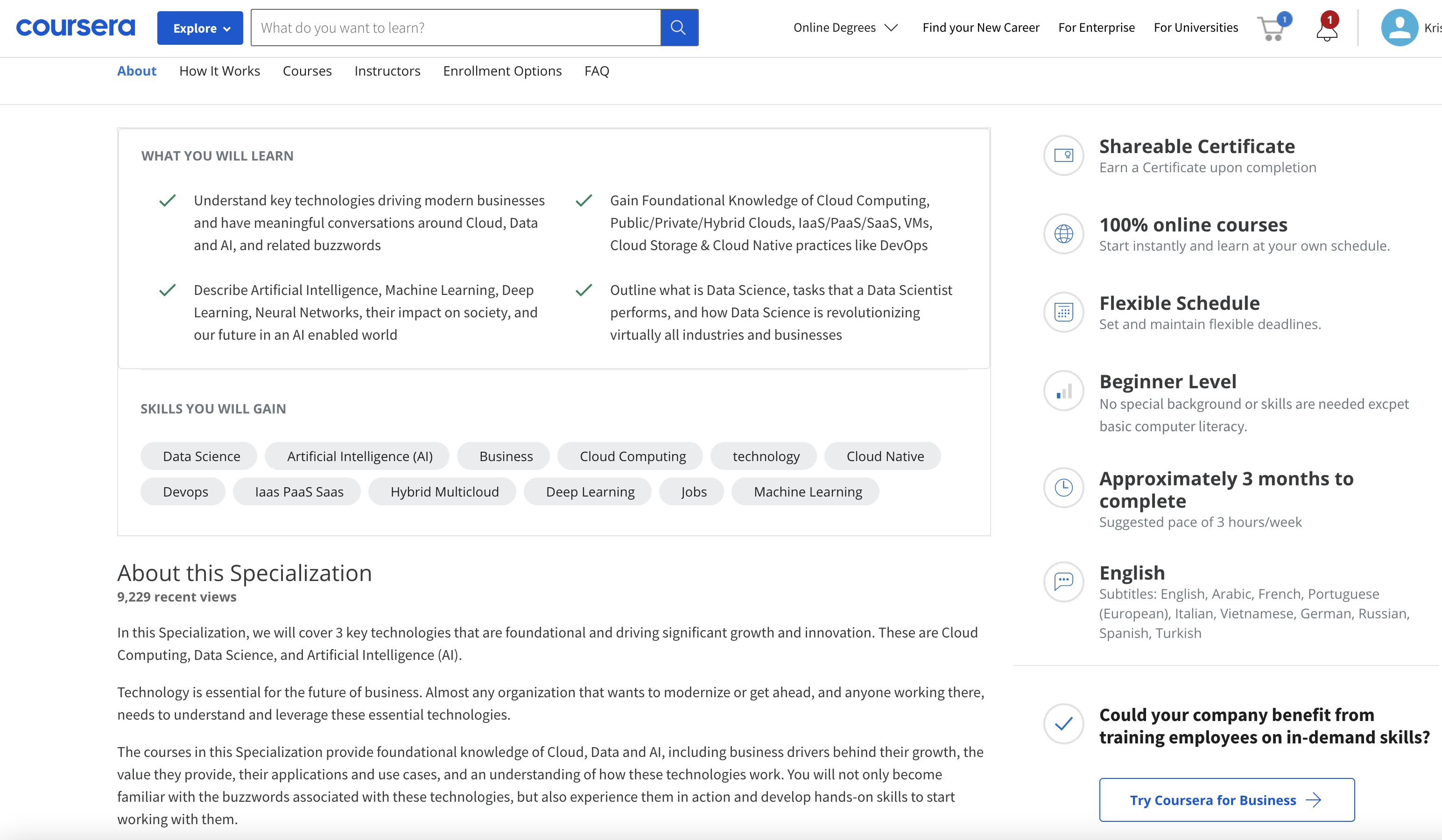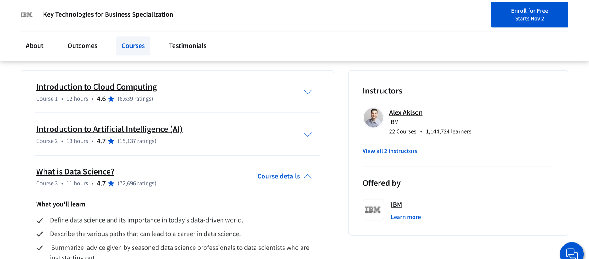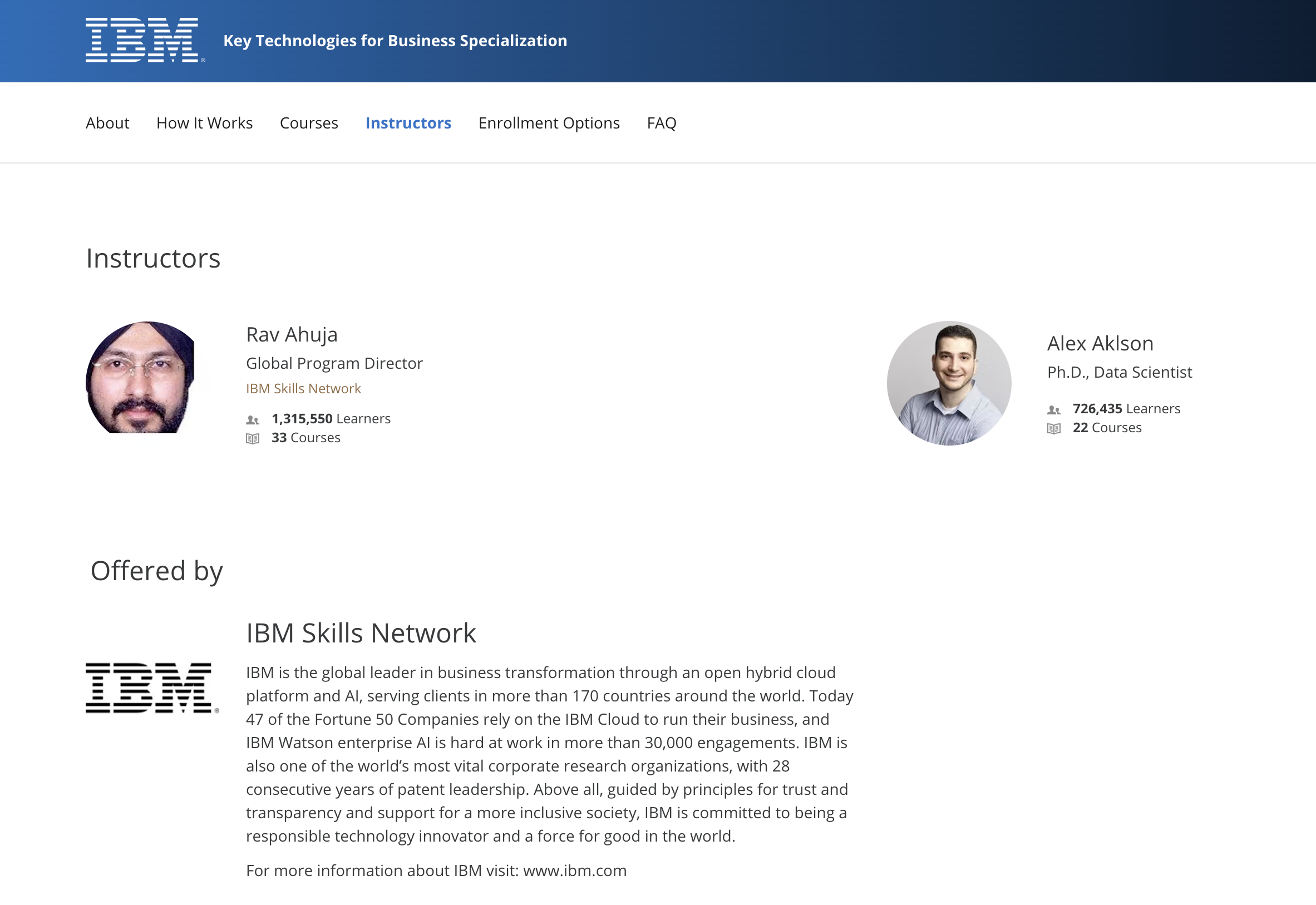 - Key Technologies for Business Specialization – IBM via Coursera – Best IT Course