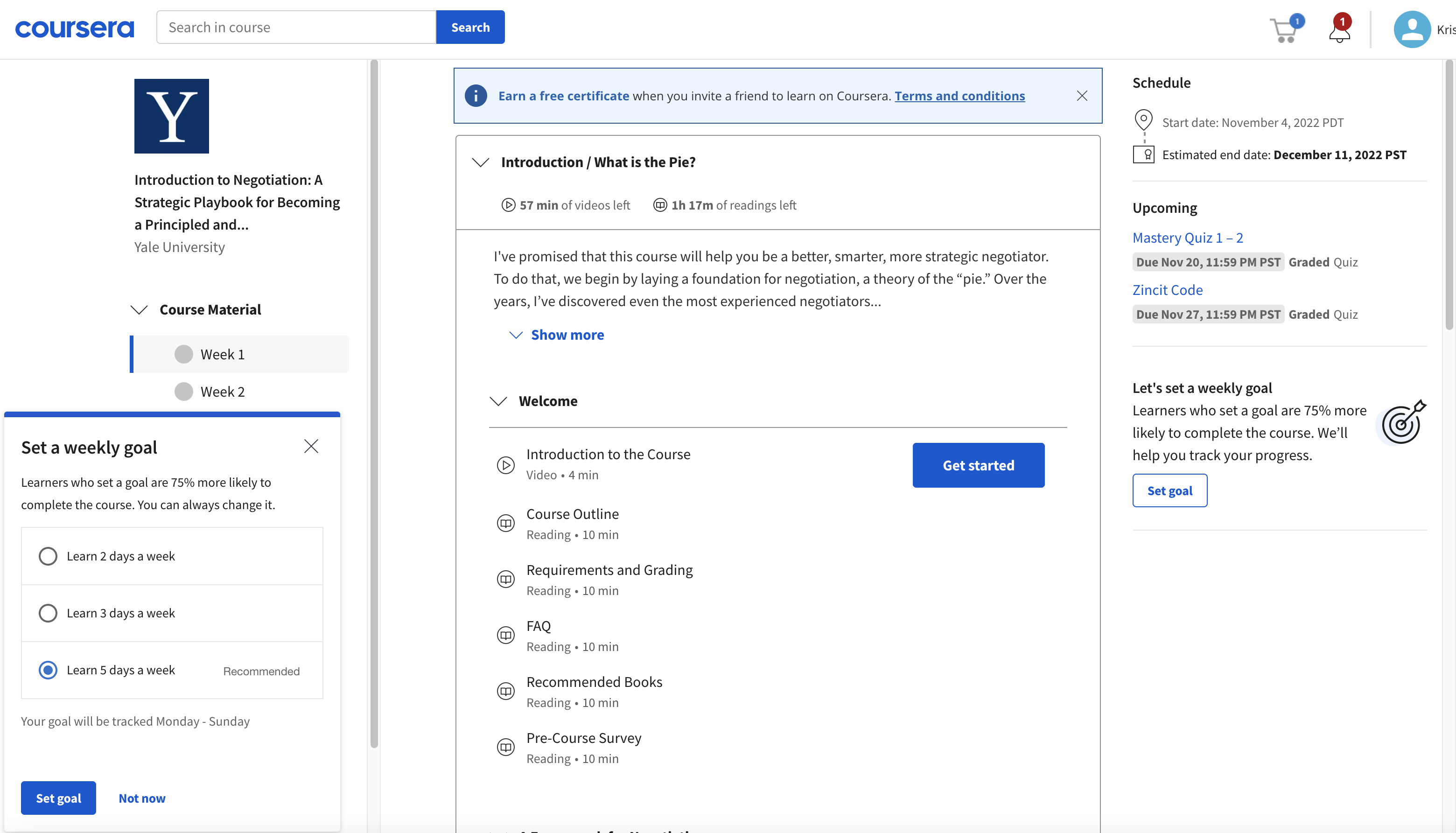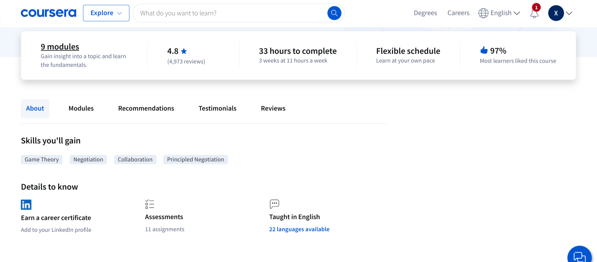 - Introduction to Negotiation – Yale University via Coursera – Best Negotiating Course