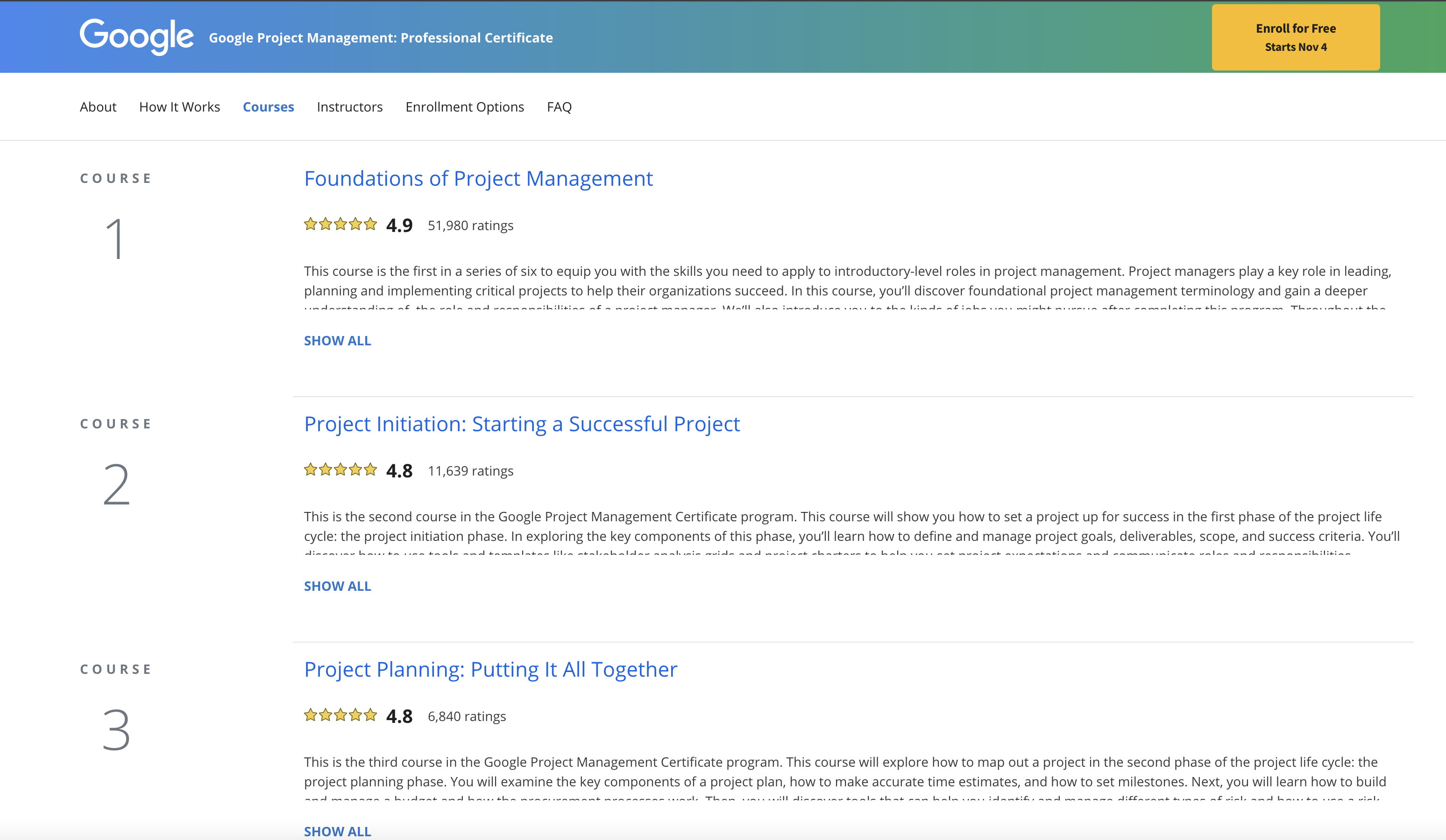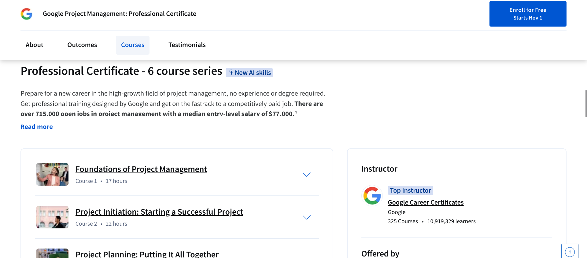 - Google Project Management Certificate – Google via Coursera – Best Project Management Course