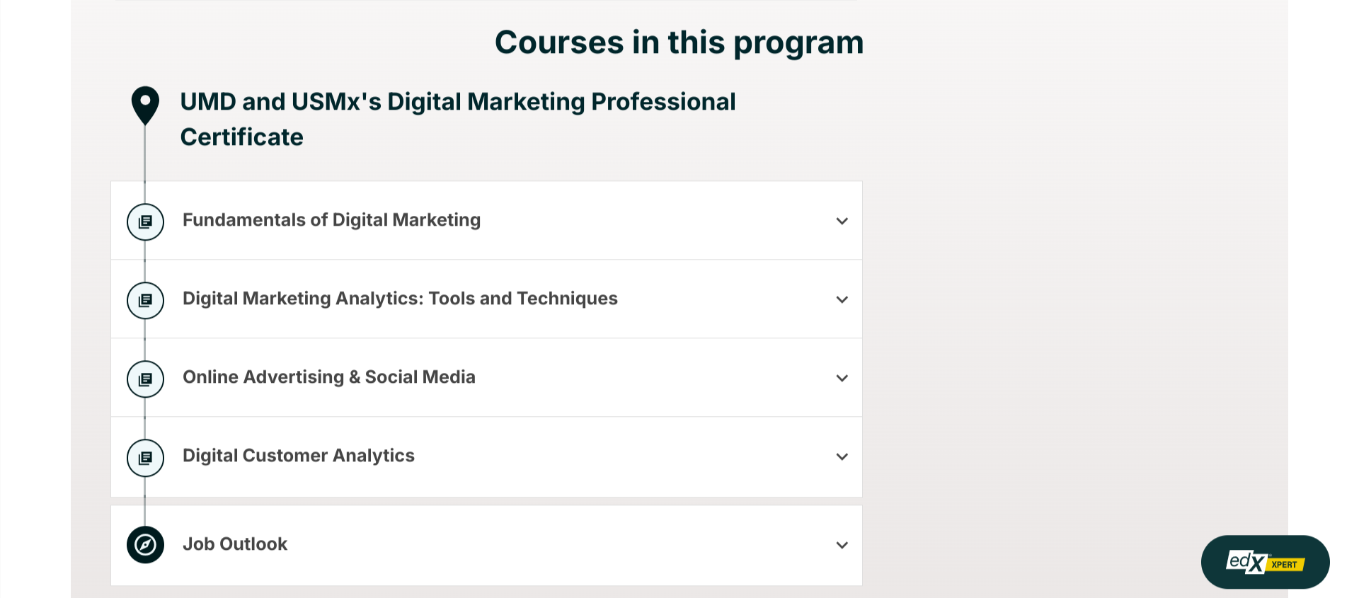 - Professional Certificate in Digital Marketing – University of Maryland via edX – Best Marketing Course