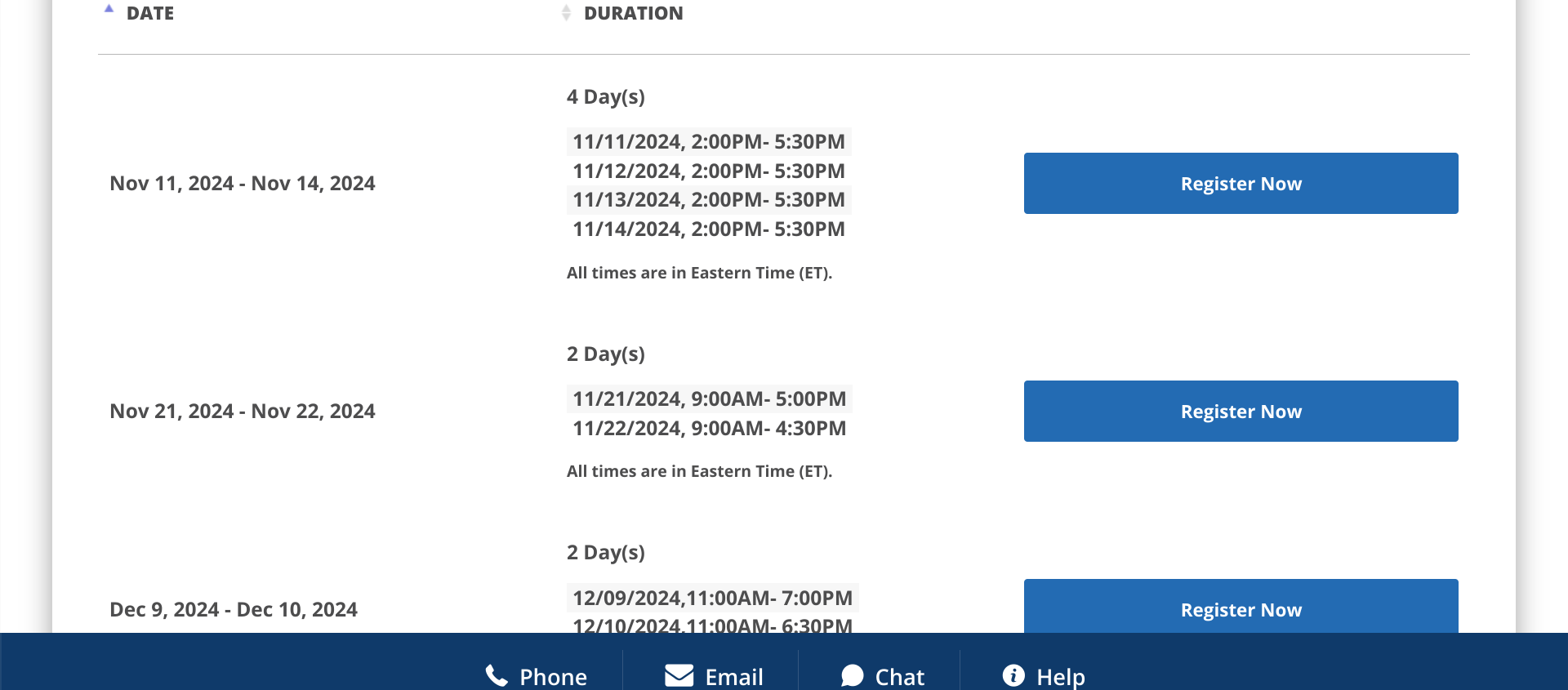 - In-depth review of each course’s syllabus, descriptions, videos, reading materials, and assignments