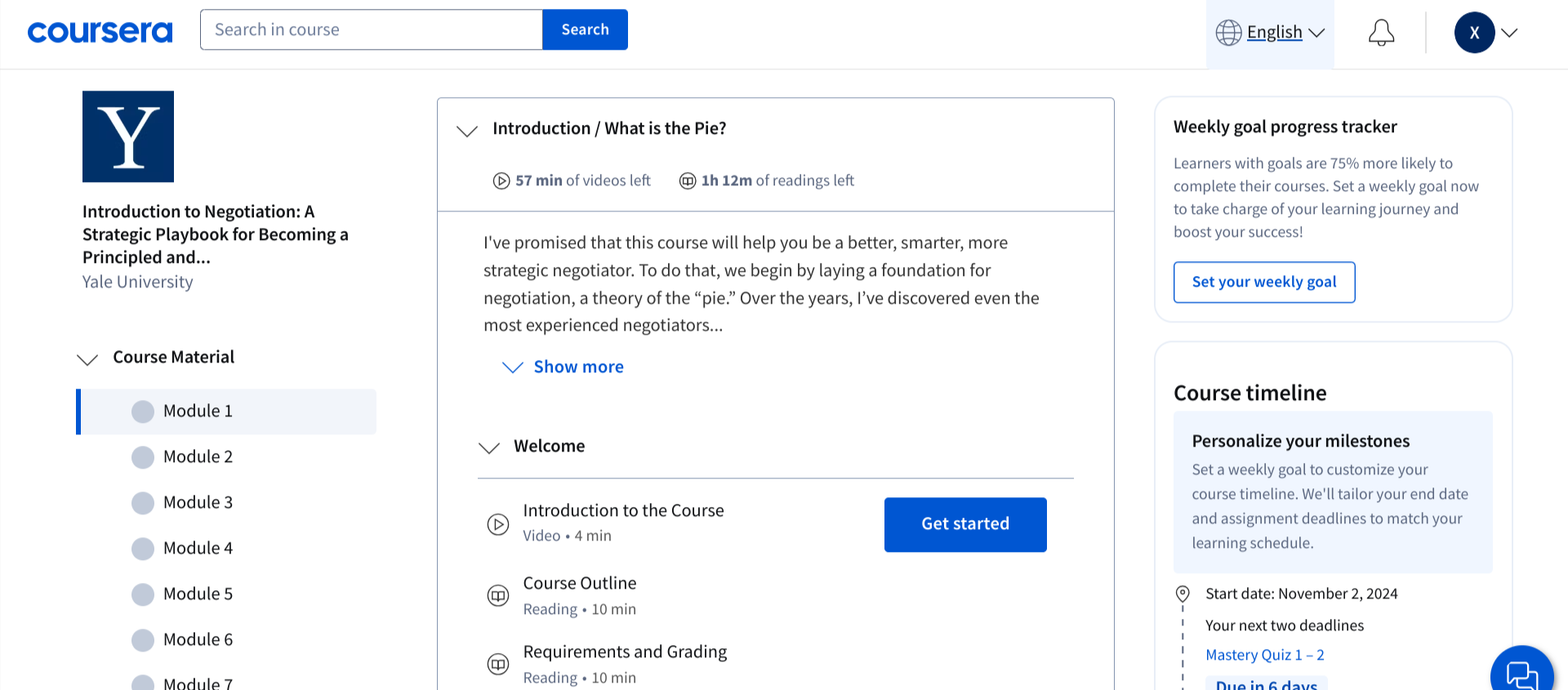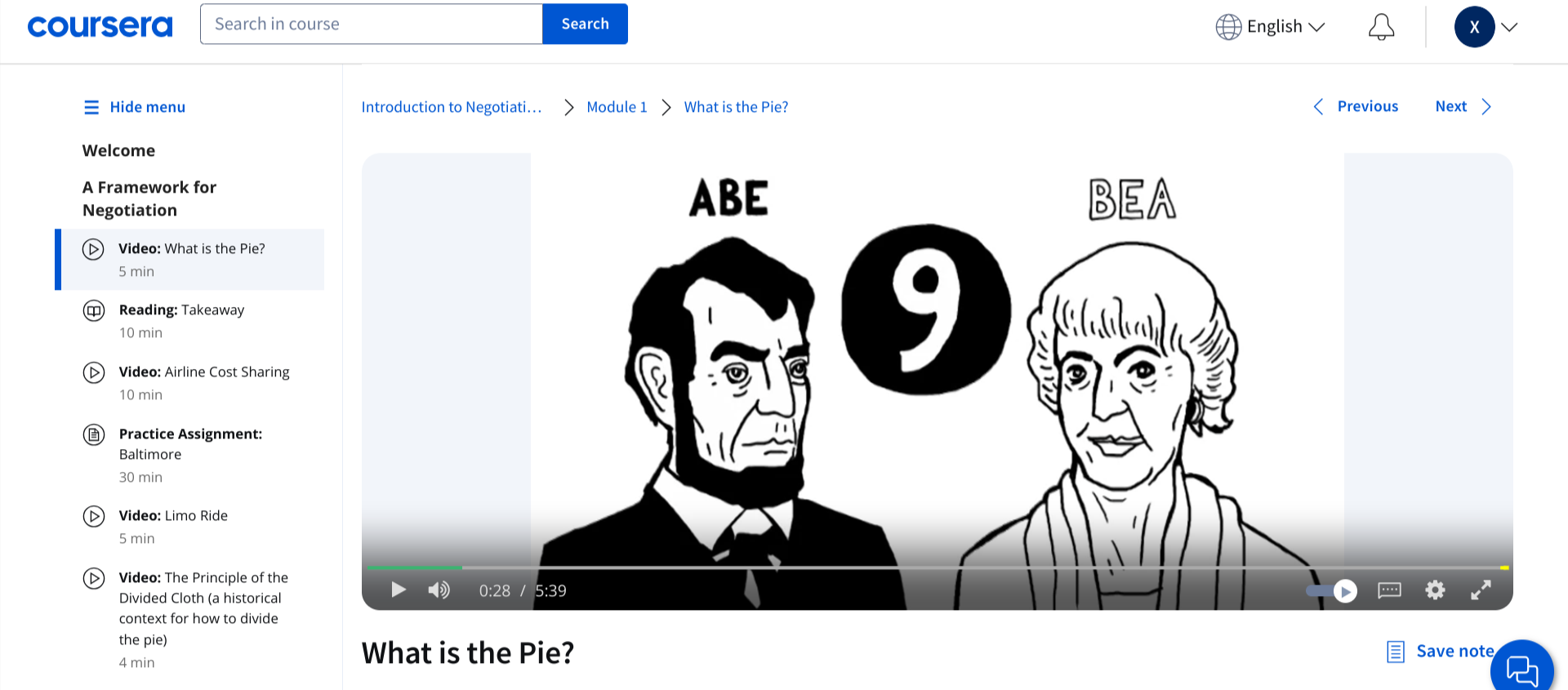 In addition to videos, students in this on-demand, flexible course will learn through reading assignments, quizzes, case studies, and feedback. Beyond strategy and tactics, the course also explores specific negotiating scenarios, like negotiating over email, and how factors like gender dynamics can play into negotiations.