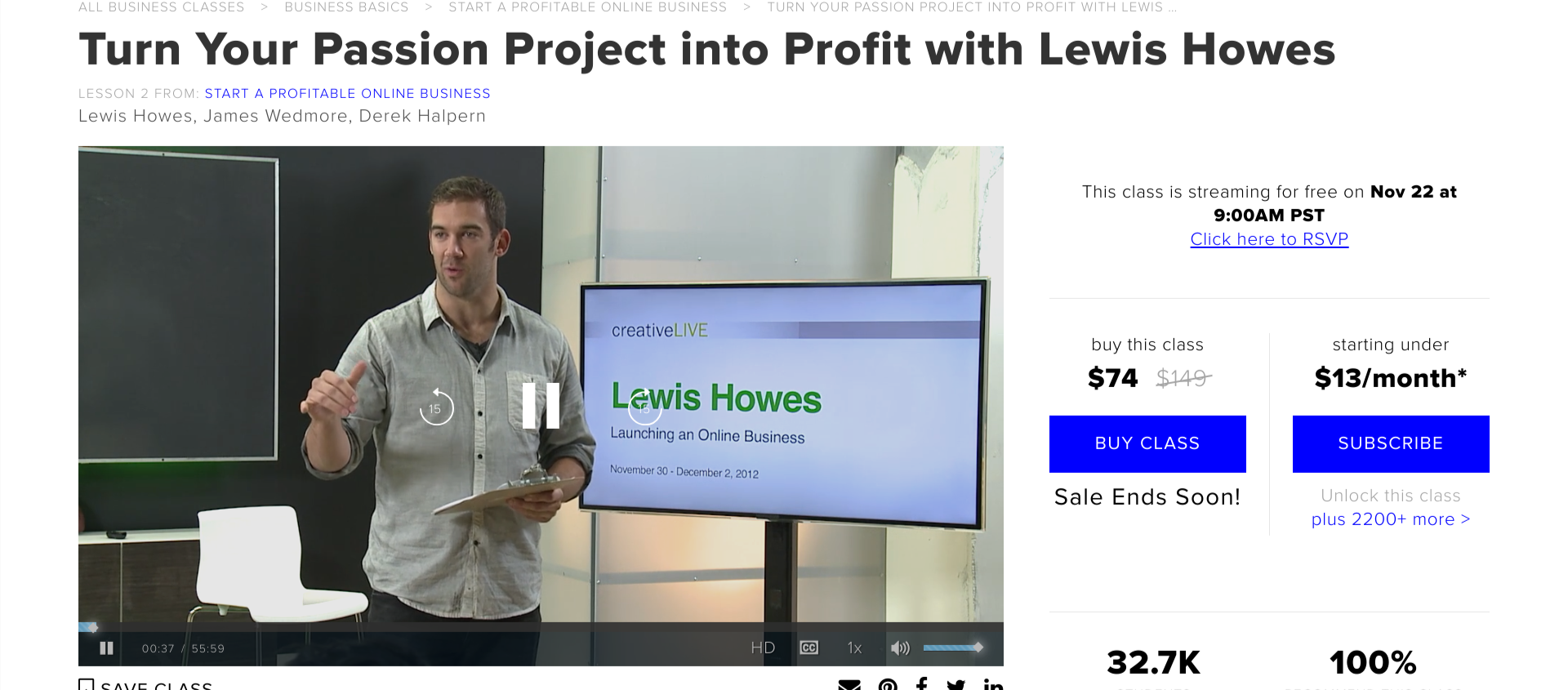 We also like the wealth of downloadable class materials, including infographics and workflows, that students receive with the course. Purchasing Start a Profitable Online Business as a standalone class will give students lifetime access to all course materials. Additionally, CreativeLive allows students to subscribe to the platform, which hosts more than 2,200 classes in a wide variety of subjects.