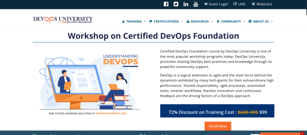 | DevOps University — Workshop on Certified DevOps Foundation — Most Affordable | $99 | X No prerequisites required