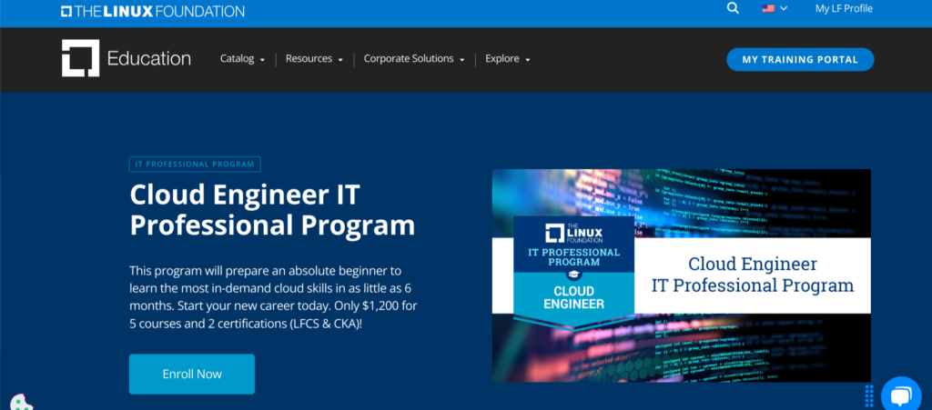 | The Linux Foundation — Cloud Engineer IT Professional Program — Best for Complete Beginners | $1,200 | ✓ No prerequisites required