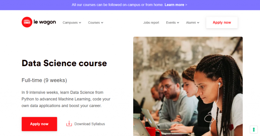 | Le Wagon — Data Science Course — Best Alumni Network | Varies by location | ✓ No prerequisites required
