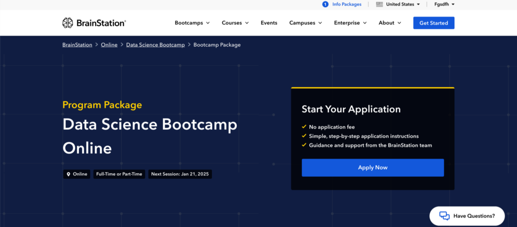 | BrainStation — Data Science Bootcamp Online — Best Student-Teacher Ratio | $16,500 | X No prerequisites required