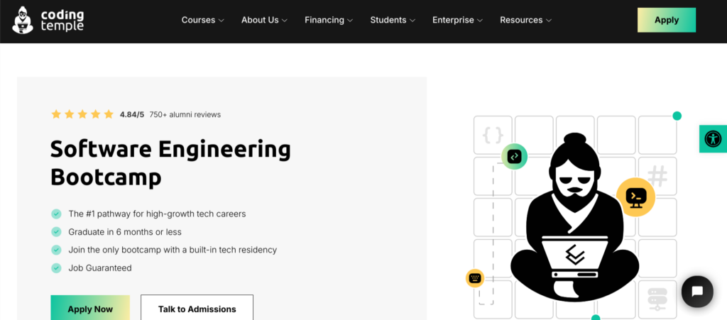 | Coding Temple — Software Engineering Bootcamp — Most Technologies Covered | $14,995 | X No prerequisites required