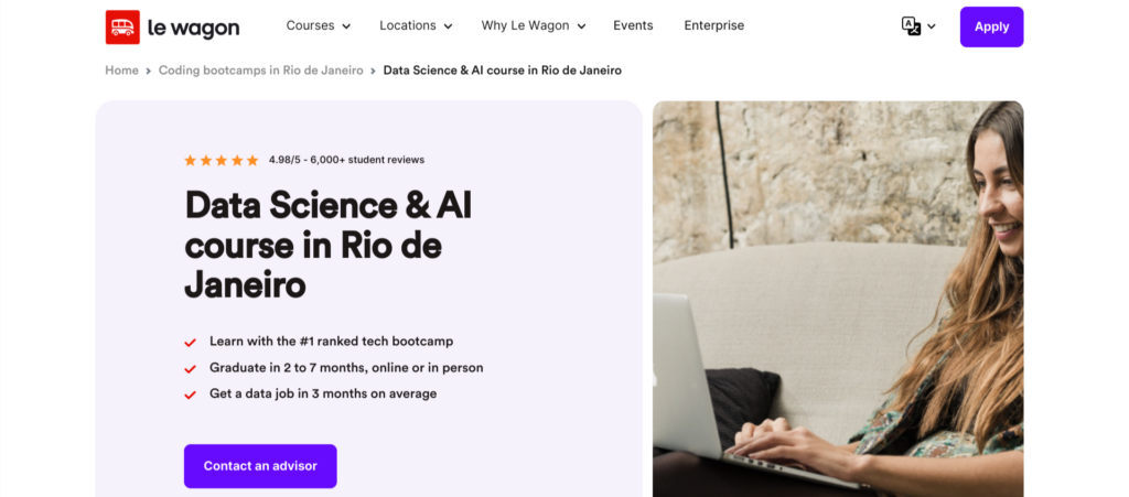 Le Wagon’s Data Science course covers various topics, from decision science to deep learning to data engineering. They’ll certainly provide you with the skill set you need on the job as a data analyst, but the biggest benefit to this program is what it teaches you about navigating the job market. They offer job fairs, networking events, and alumni coaching sessions to help you jumpstart your career.