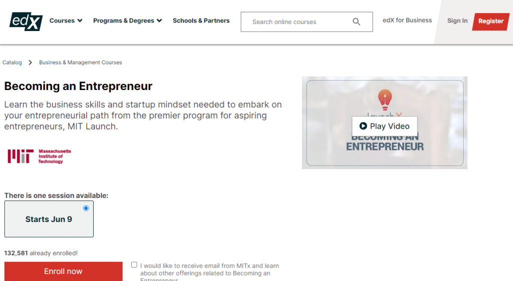 | EdX — Becoming an Entrepreneur — Best for Beginners | Free; add a verified certificate for $69 | ✓ No prerequisites required