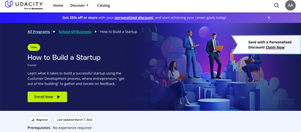 | Udacity — How to Build a Startup — Most Affordable | Free | ✓ No prerequisites required