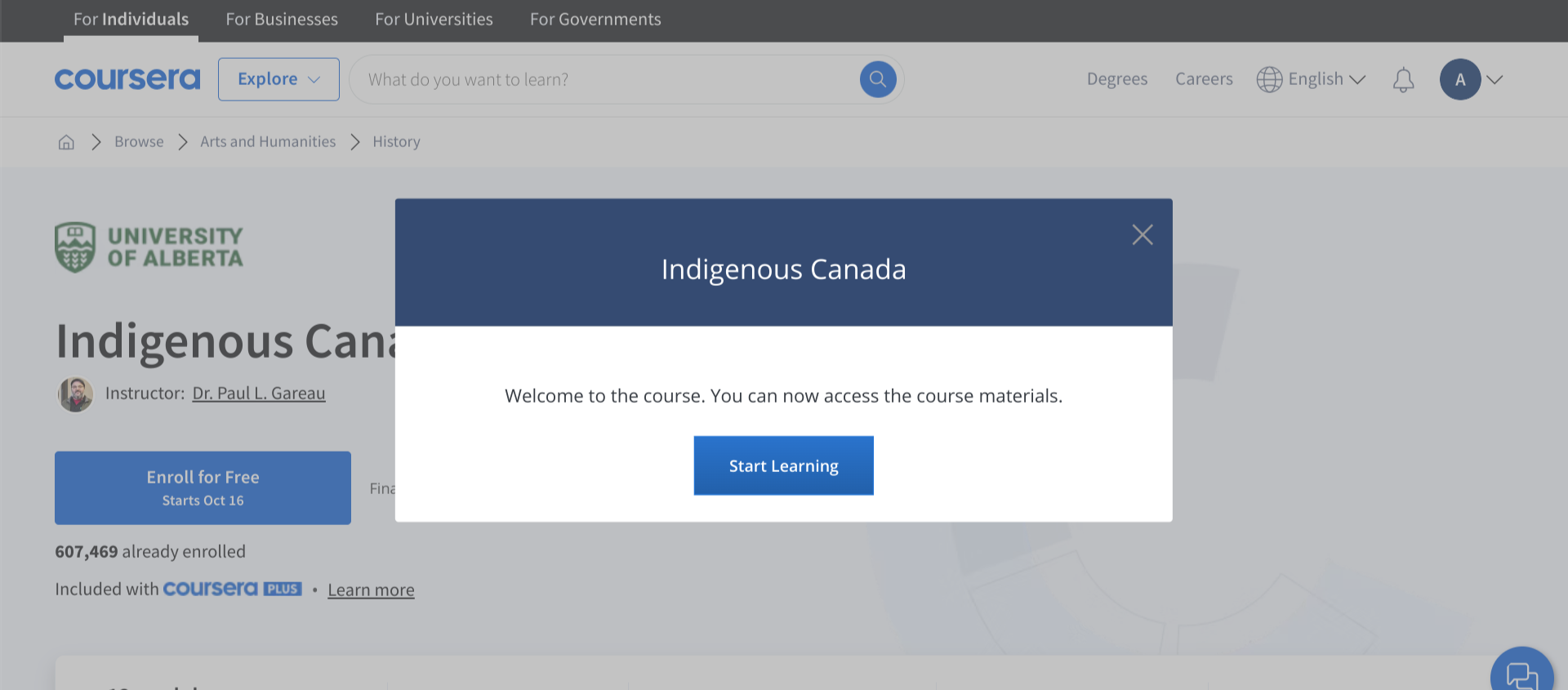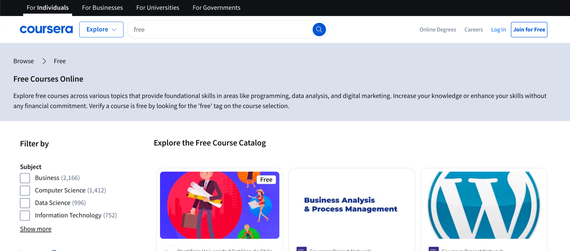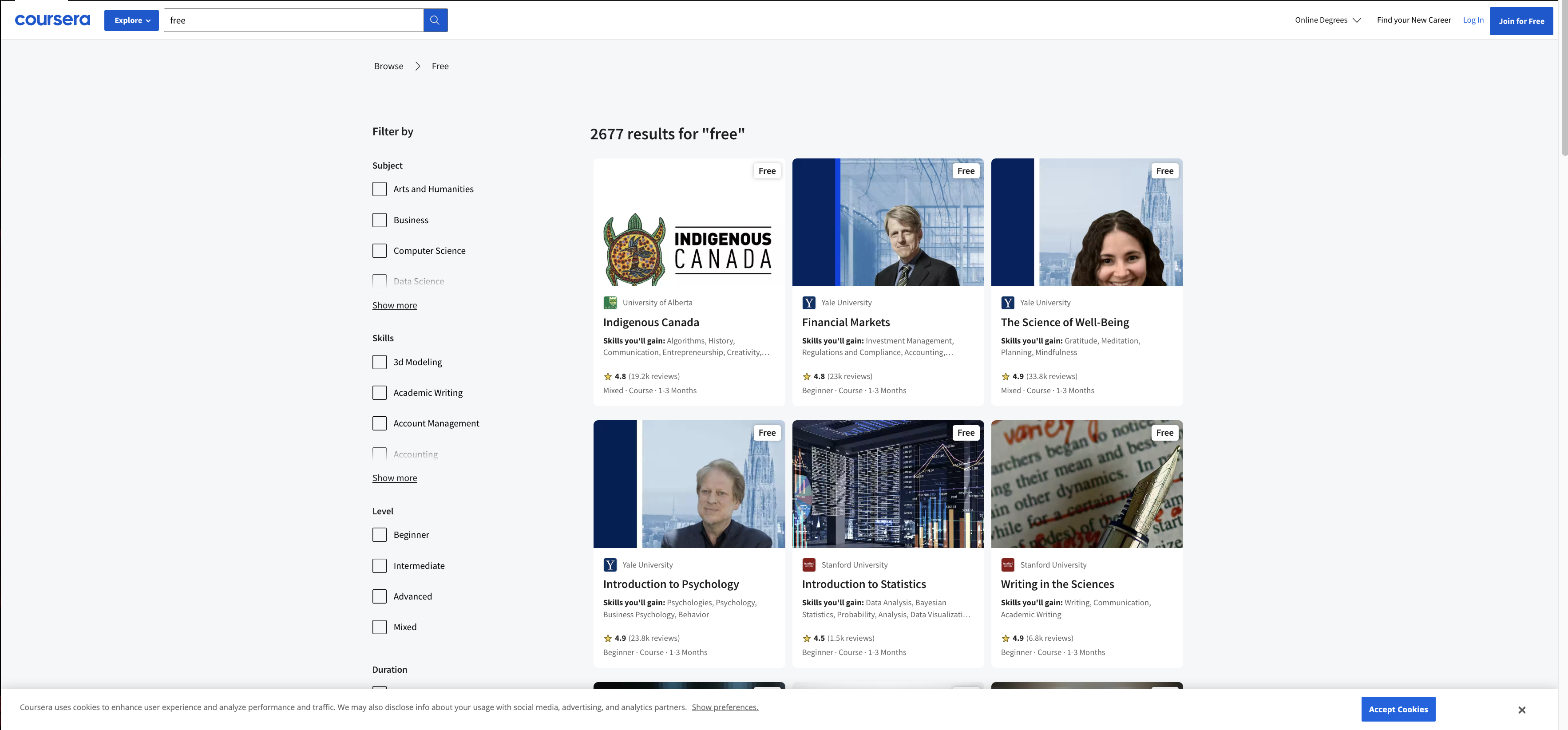As with other providers on our list, free will only get one so far with Coursera. The platform offers full certificate and degree programs, but those are only paid options. This makes Coursera an ideal choice for students who want to explore a subject before committing the time and money to a fully paid program or learning a new skill without official documentation.