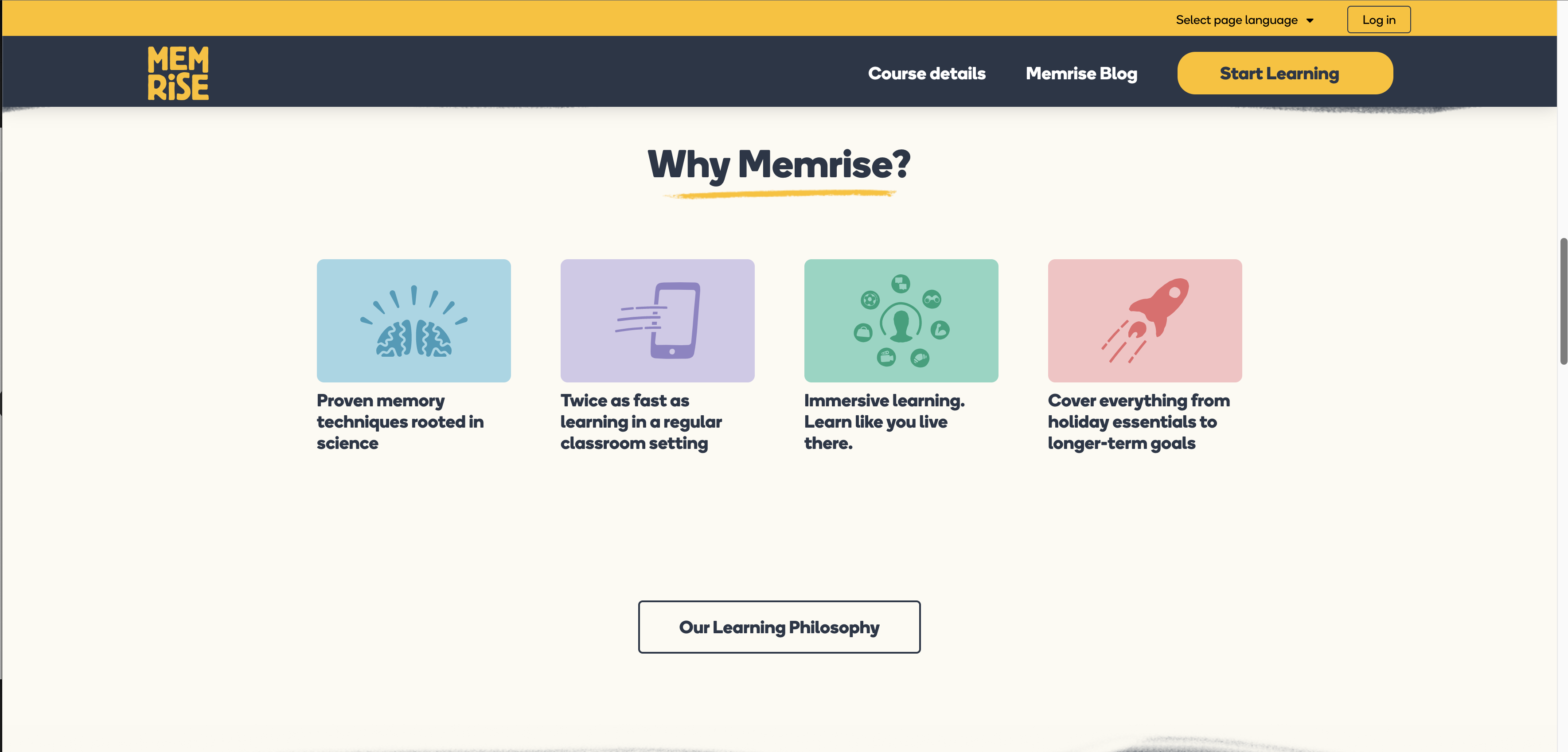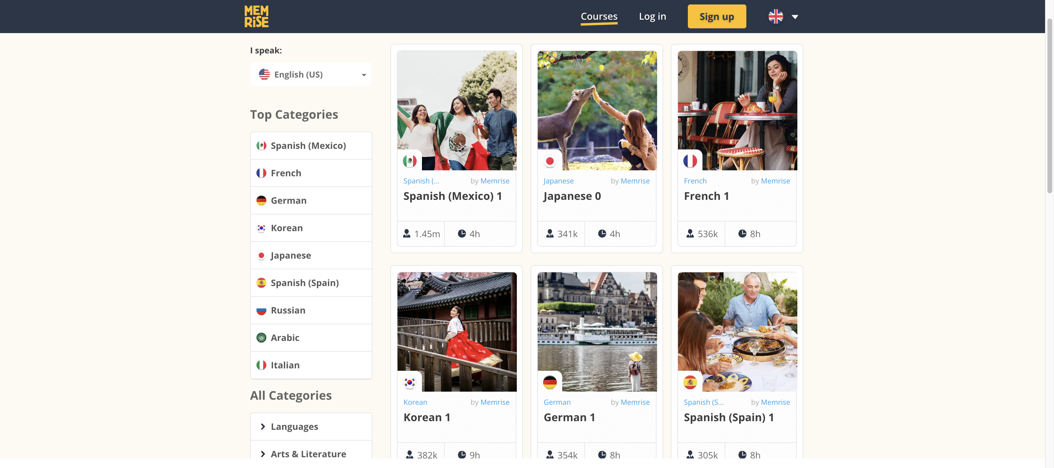 Memrise is all about making the language learning process fun, evident from the moment you visit their website or mobile app, which is available for Android and iPhones. With bright colors, engaging design, and immersive lessons, Memrise takes the intimidation and dullness out of the prospect of learning a new language and makes it an accessible and enjoyable experience.