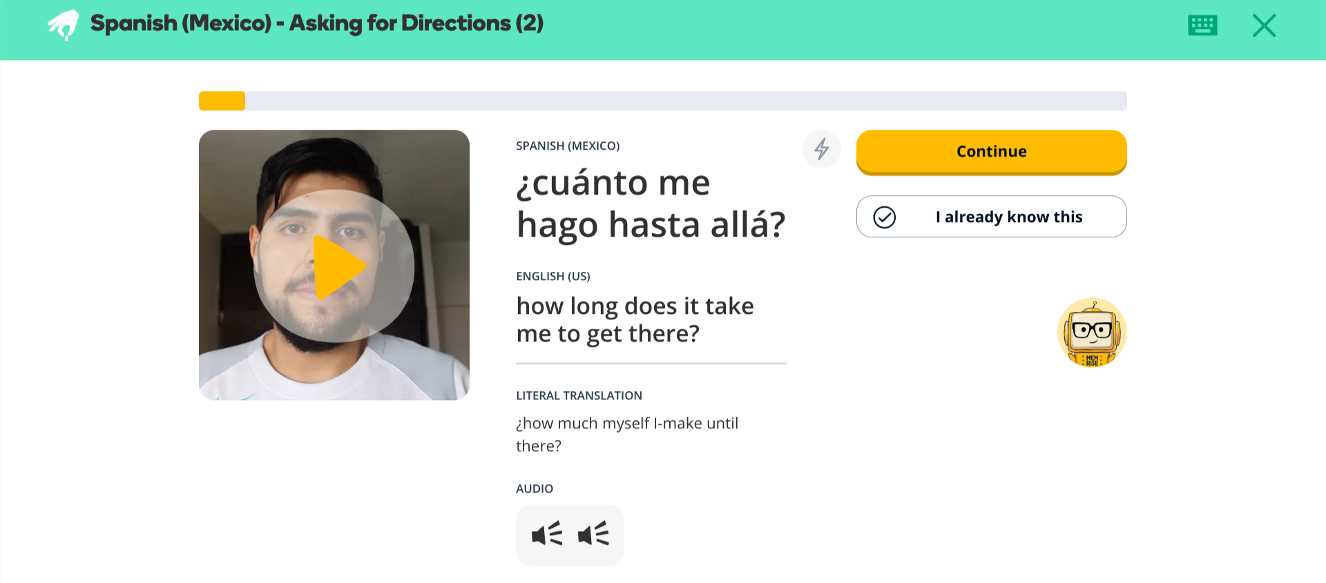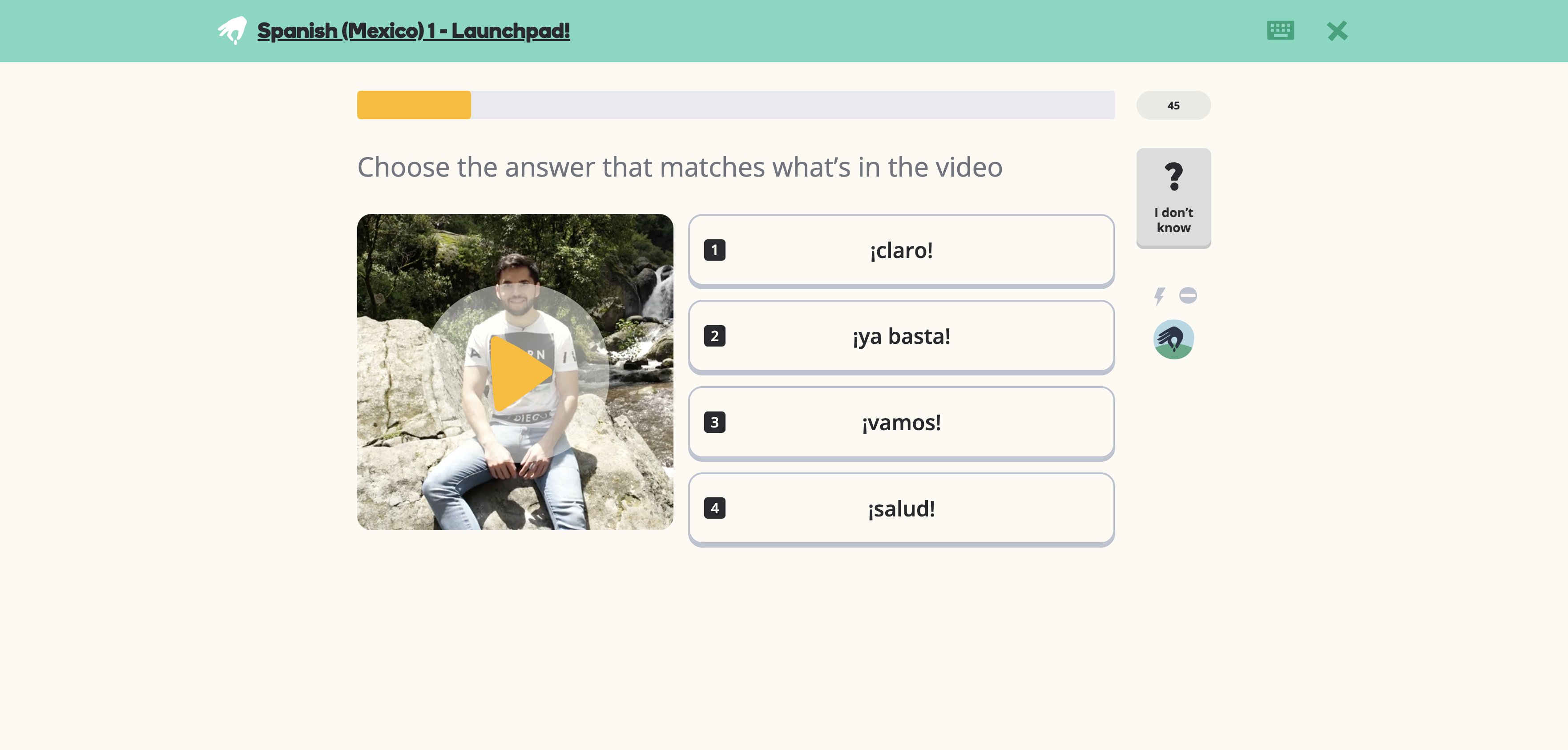The platform focuses on learning conversation skills with short video clips demonstrating keywords and phrases in the language taught. Videos start with the most common words and build up toward more advanced skills. Lessons are grouped into levels, so students with some foundational knowledge can skip ahead to coursework that meets them where they are.