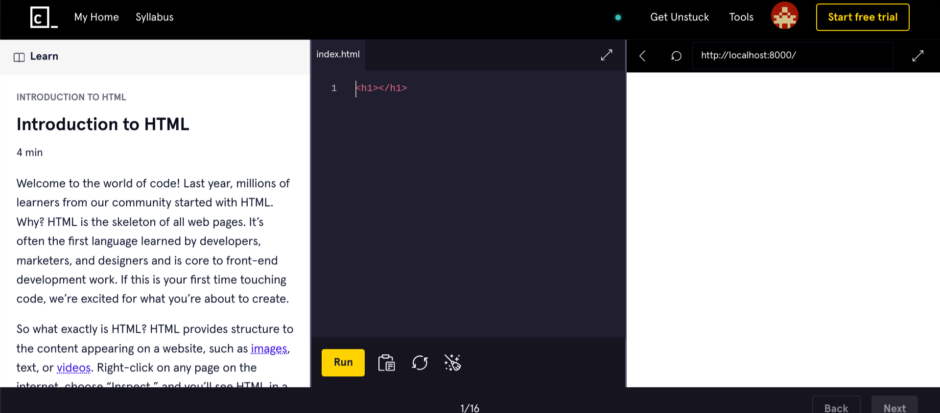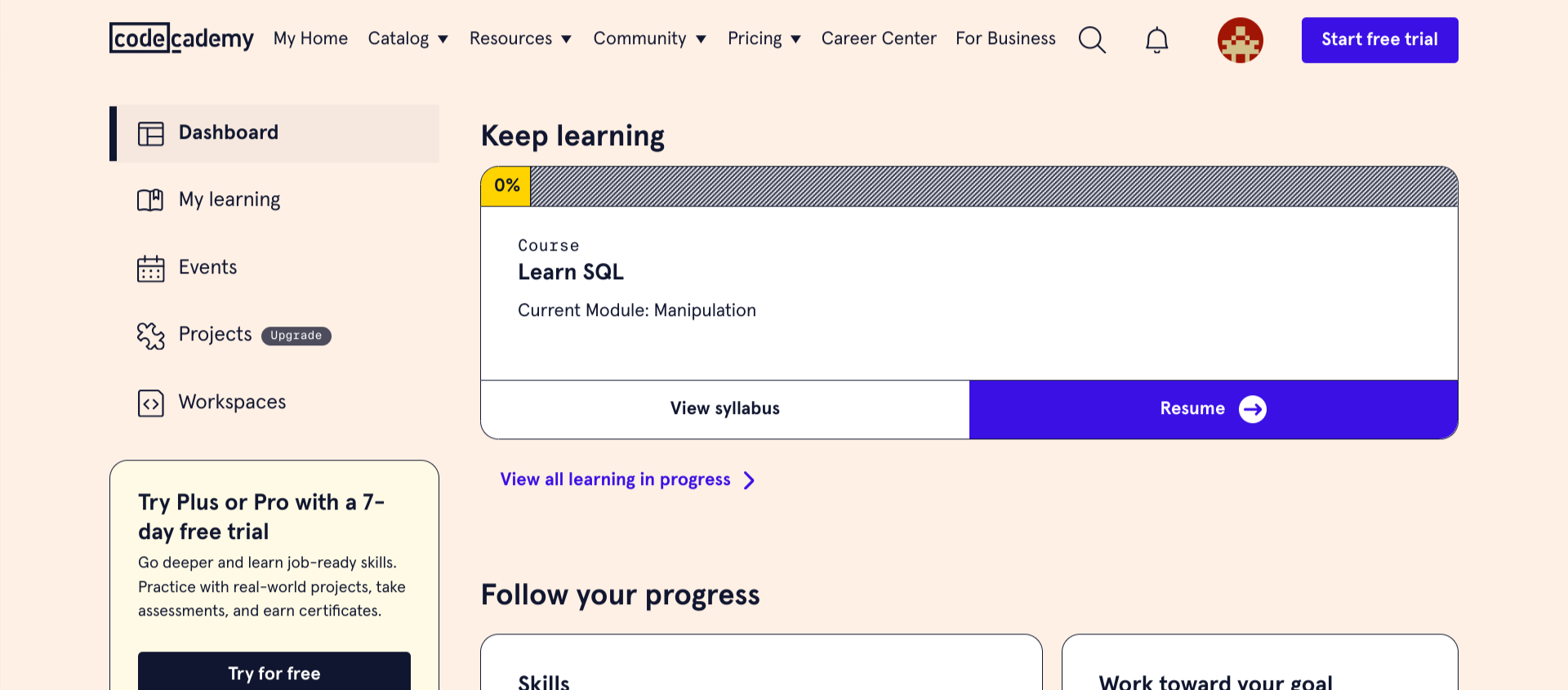 Although there are resources like forums, cheat sheets, and hints, Codecademy’s free courses don’t include any live instruction or teacher interaction, making it hard to get help if students get stuck on a particular skill or concept. Students must also upgrade to Codecademy’s paid Pro plan to access all class features, including graded assignments, experiential learning projects, and completion certificates.