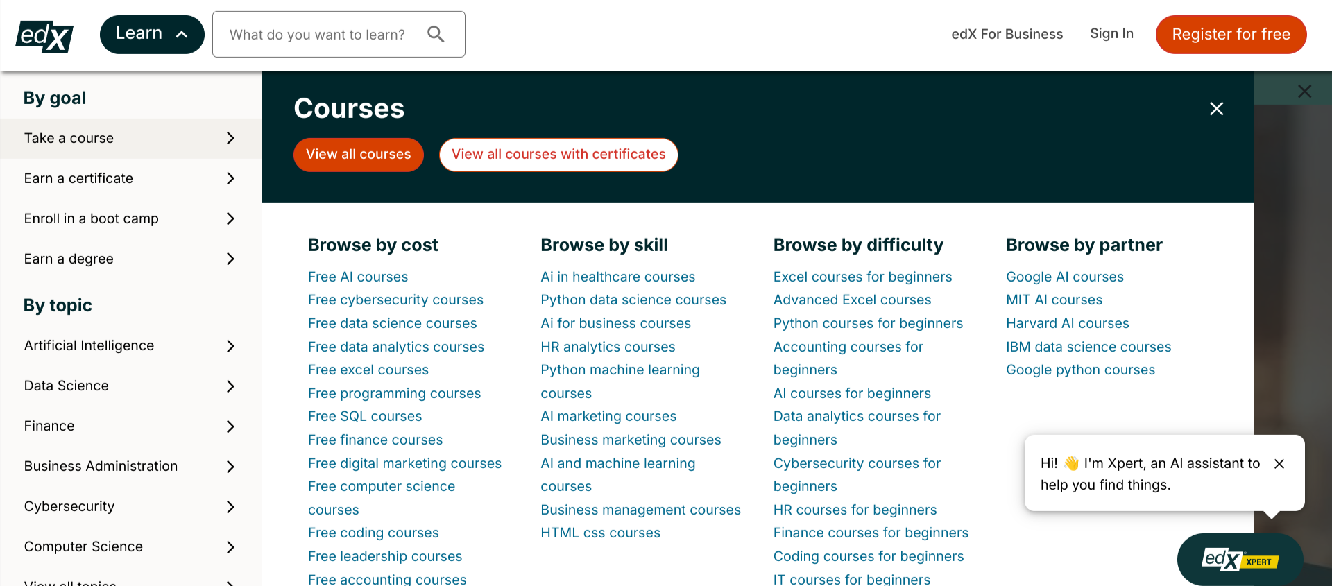 EdX’s mission is to increase access to high-quality education for all individuals, regardless of location or financial status. This non-profit supports that mission by aggregating courses from some of the world’s most renowned universities and allowing students to audit them for free. EdX is our pick for the best overall free online course provider because of its wealth of options, established reputation as a leader in online education, and connections to prestigious higher education institutions.