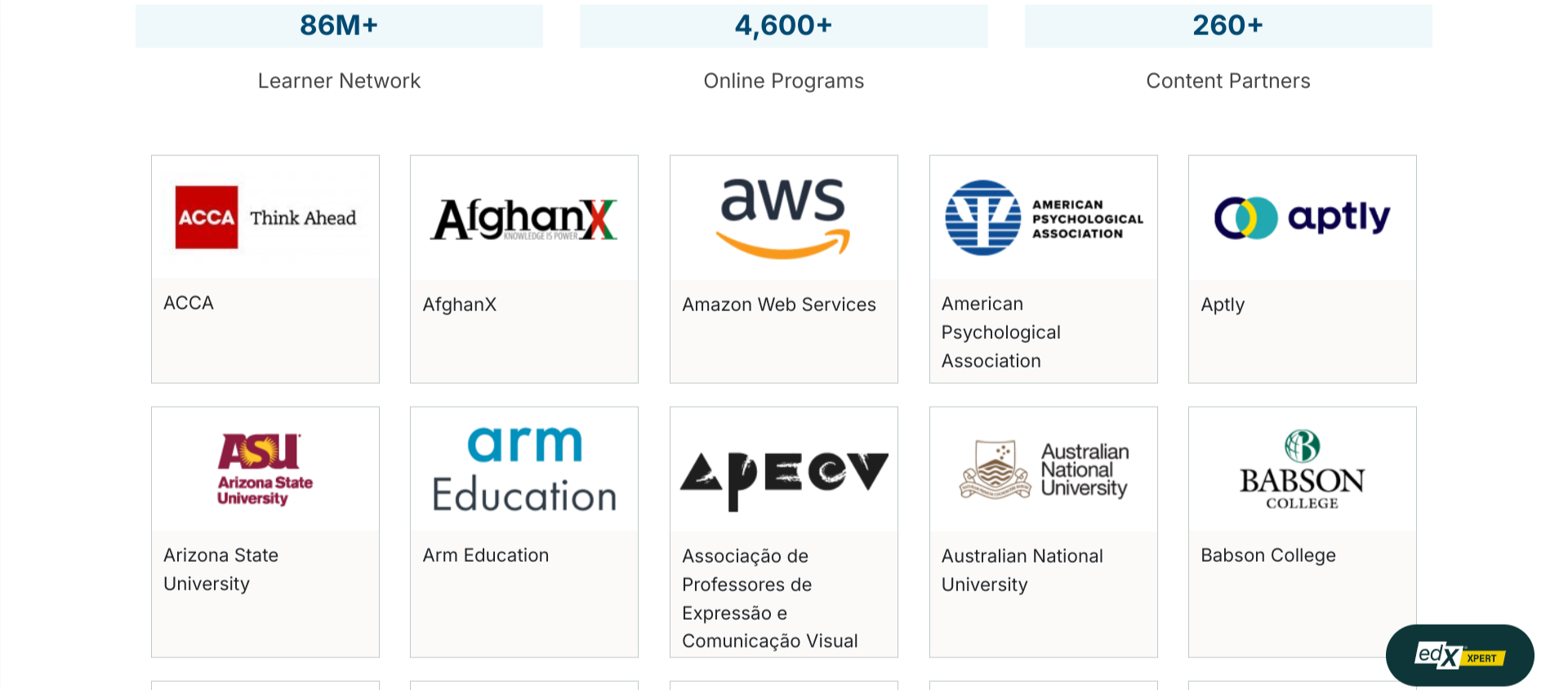 Users give edX a 4.5-star rating on the software review site G2 and a 1.8-star rating on Trustpilot. Satisfied users praise the service for providing affordable access to courses from top colleges around the globe. Many students say it’s helped them continue developing skills after completing degrees. Some criticisms include aggressive email marketing and required upgrades to access some materials.