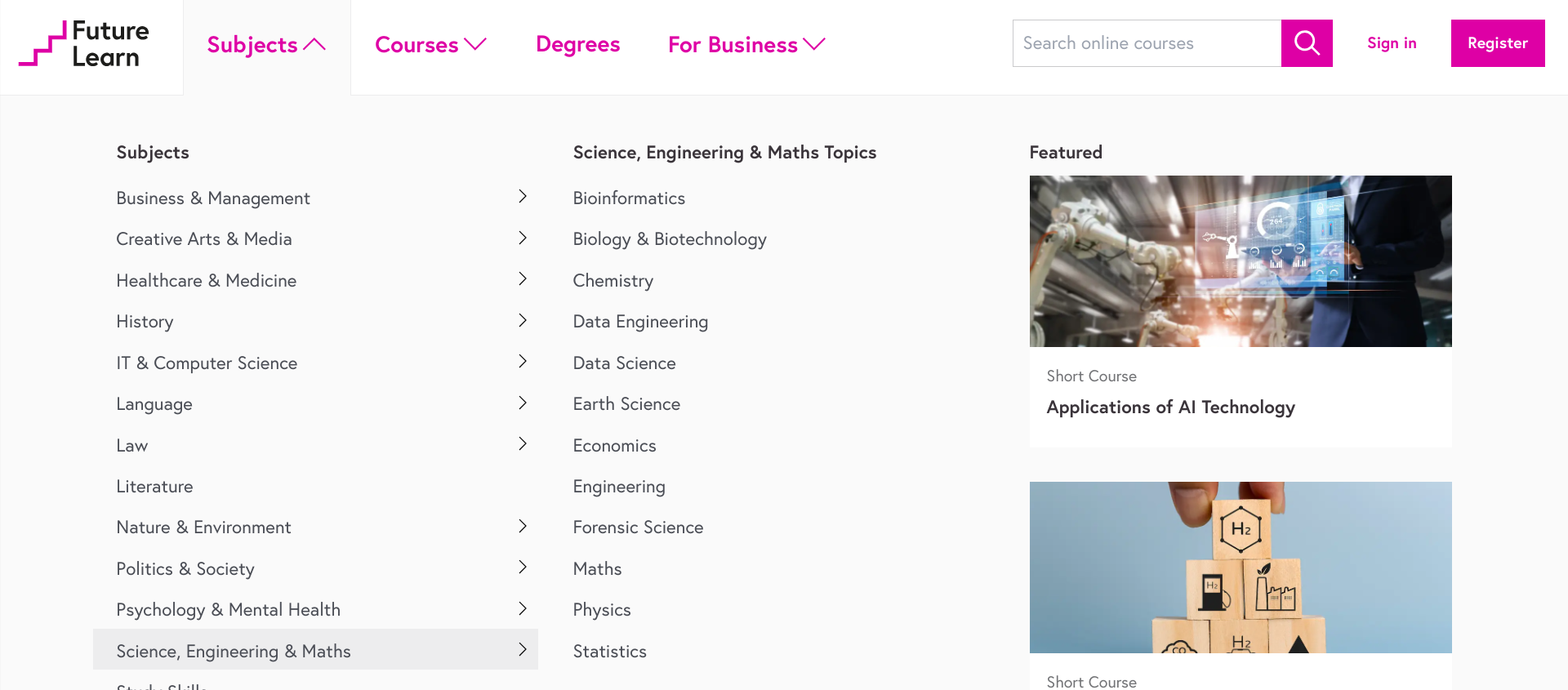 FutureLearn is a digital learning platform based on empowerment, transformation, experimentation, and shared purpose principles. It offers individual courses, micro-credentials, and online degrees in a variety of popular subjects taught by industry experts and faculty from leading institutions around the world. We chose it as our pick for the best free online course provider for science, technology, engineering, and math courses because of the breadth and quality of its classes in these areas.