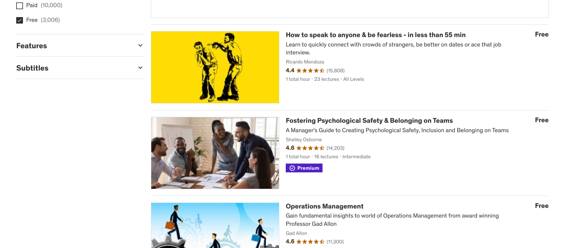 Udemy’s offerings are tailor-made for business professionals, so we recommended them for free online business courses. Since its founding in 2010, Udemy has connected millions of students with life-changing educational opportunities teaching highly desirable skills in management, sales, human resources, marketing, and more. Udemy’s free and paid online courses are designed to help students succeed as freelancers, business owners, creative professionals, and more.