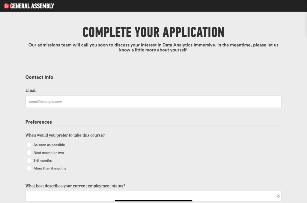 Udacity creates a customized experience for students by having them complete a short questionnaire upon registering, which the platform uses to recommend courses to help students meet their goals.