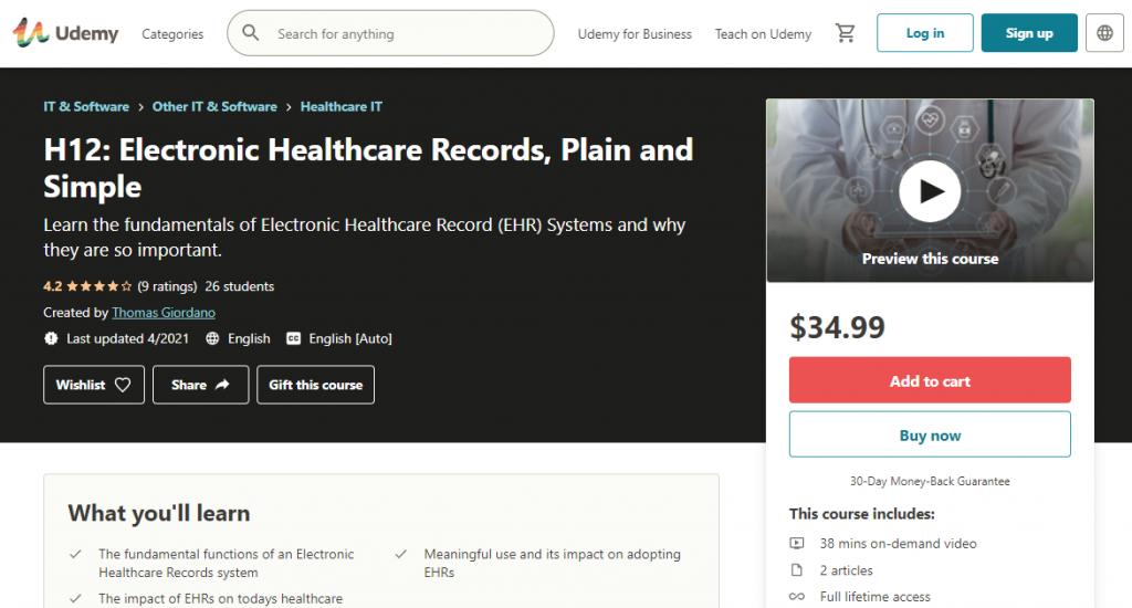 - Udemy — CompTIA Healthcare IT — Best for Beginners
