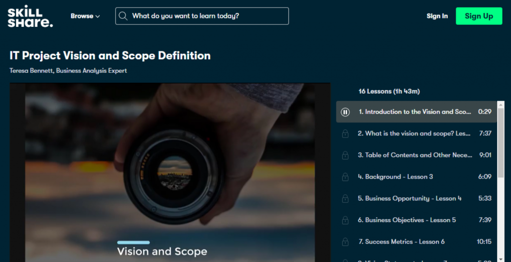 This course is intended for those new to project management or who want to learn about key project roles and stages. Most of the course focuses on creating a project management plan, with lessons on risk management, issue management, change management, and more. There are quizzes after each section to test your comprehension of the material, and you’ll get a certificate once you’ve completed the entire course. There are 32 lectures in all for a total of about three hours, which you can complete at your own pace. The course is available on Udemy for $94.99 and has a 30-day money-back guarantee.