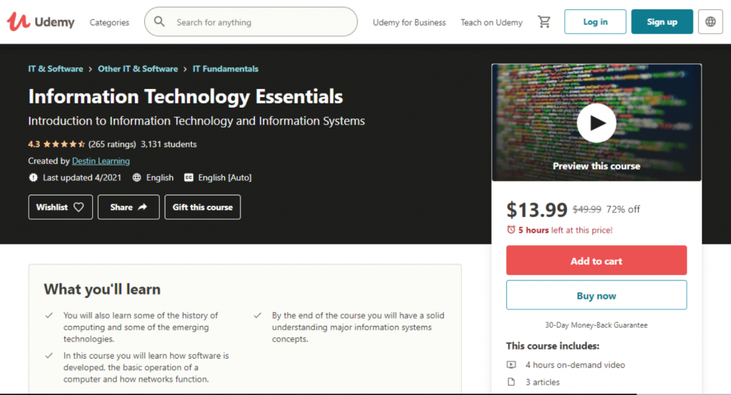 - Udemy — Information Technology Essentials — Most Affordable