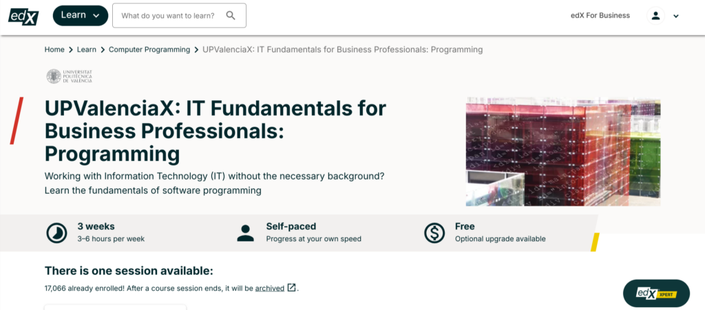 | edX — IT Fundamentals for Business Professionals: Programming — Best Advanced Course | Free (Add a Verified Certificate for $69) | X No prerequisites required
