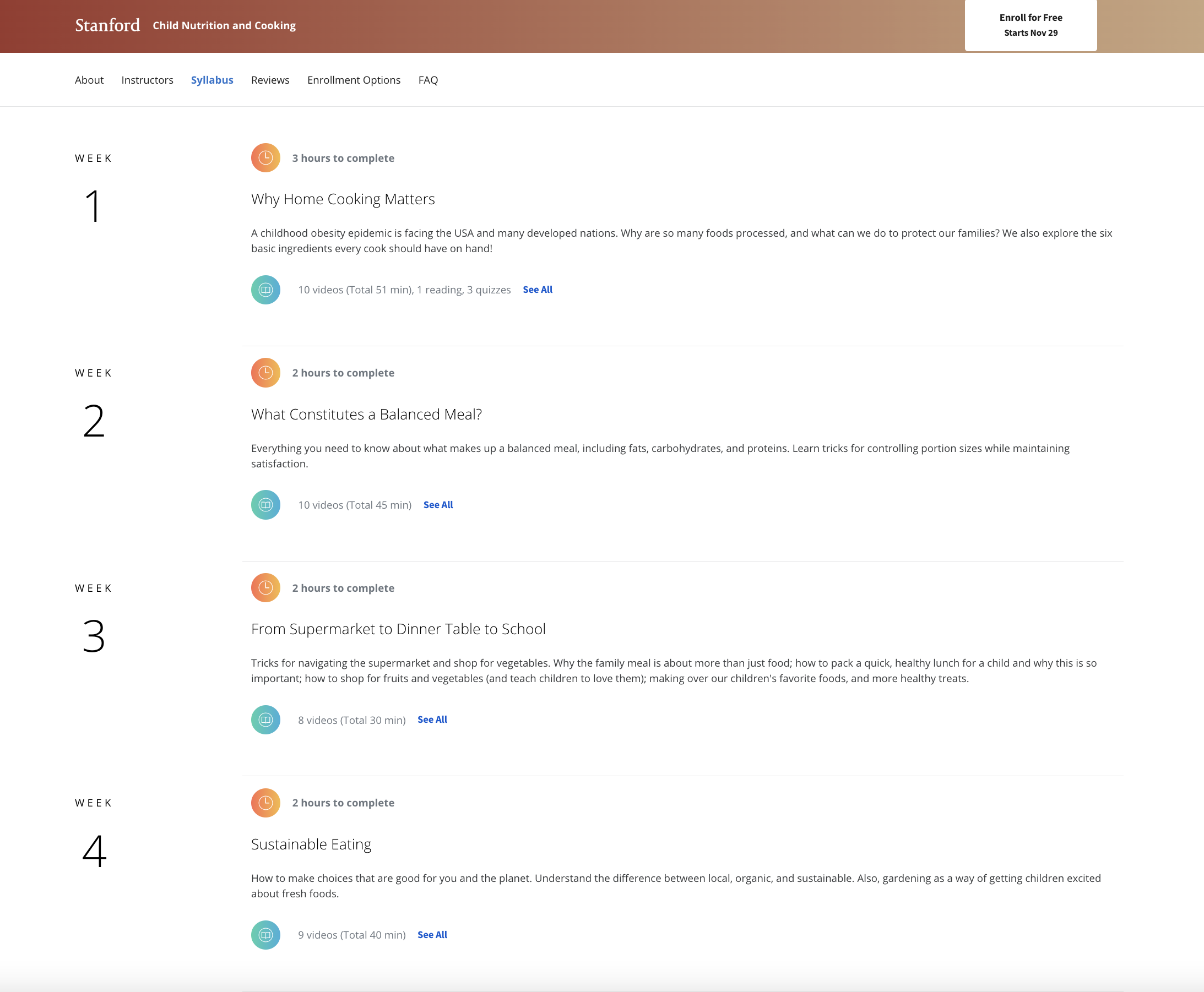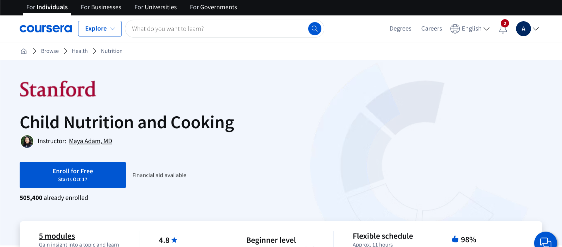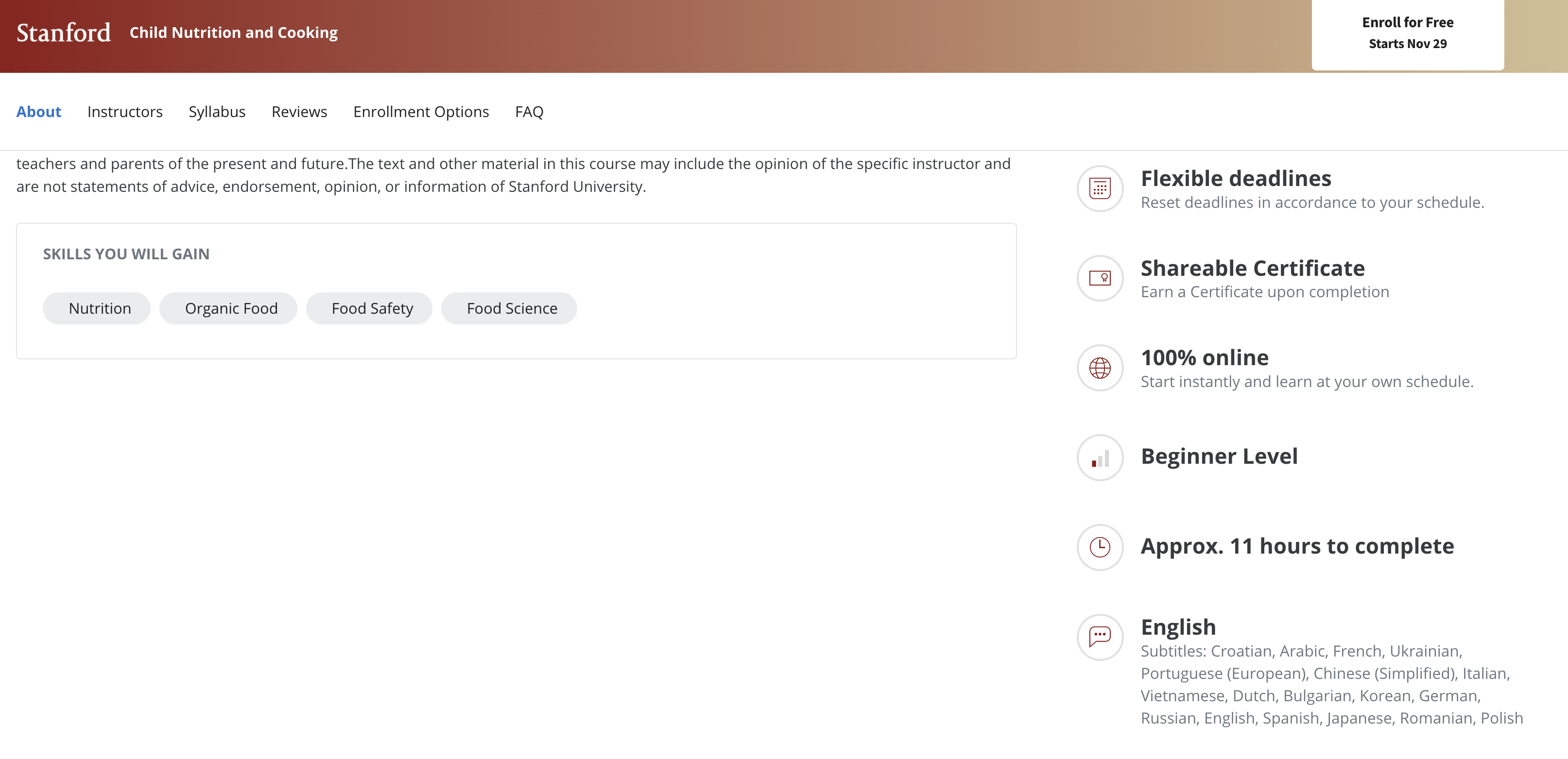 - Stanford University via Coursera – Child Nutrition & Cooking — Best for Child Nutrition