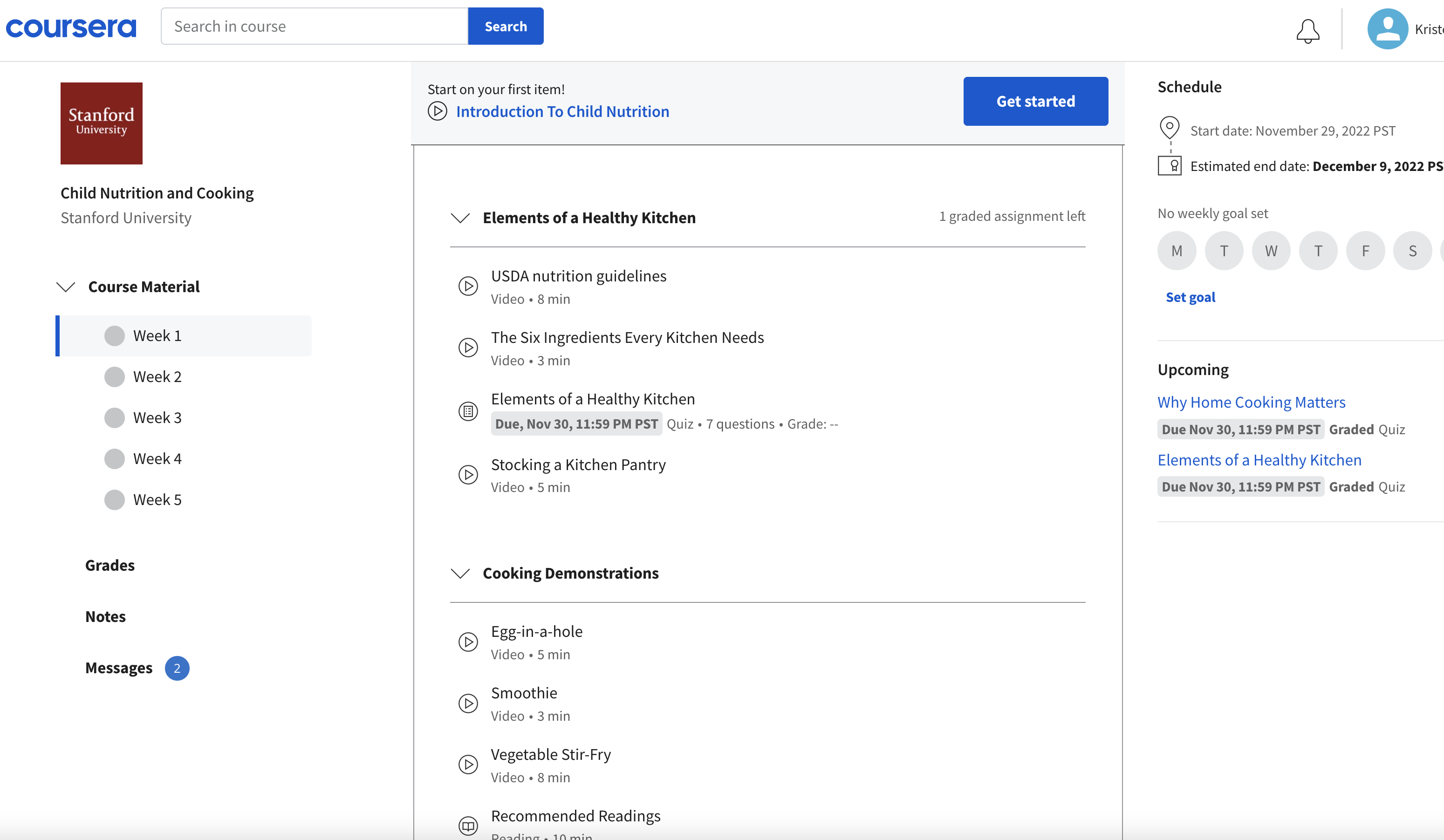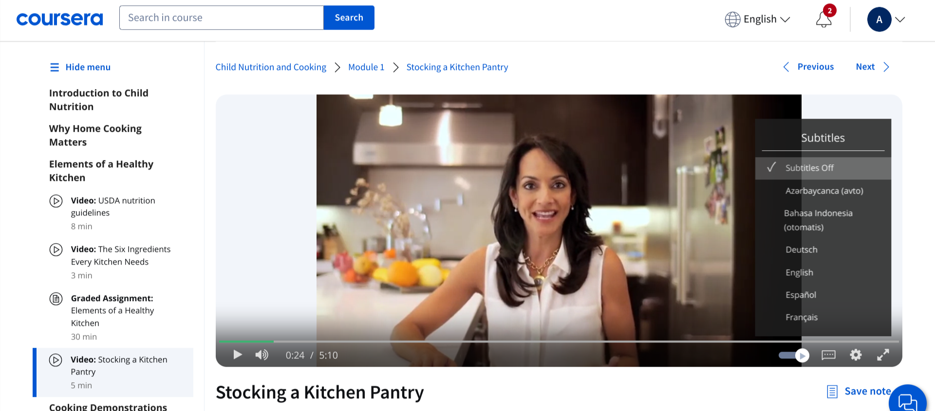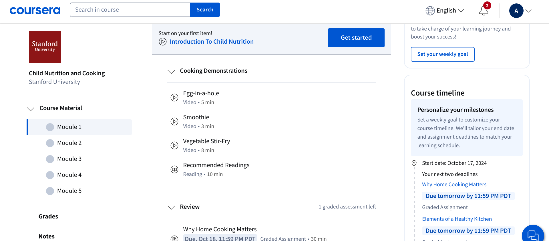 As a beginner-level course, Child Nutrition & Cooking may be too basic for individuals with some background knowledge or experience with the topic. Although the course is offered through Stanford University and taught by a Stanford instructor, the tone and delivery are for a general audience. Additionally, although a certificate of completion for the course is available, students should know that this course is designed more for personal knowledge than career advancement.