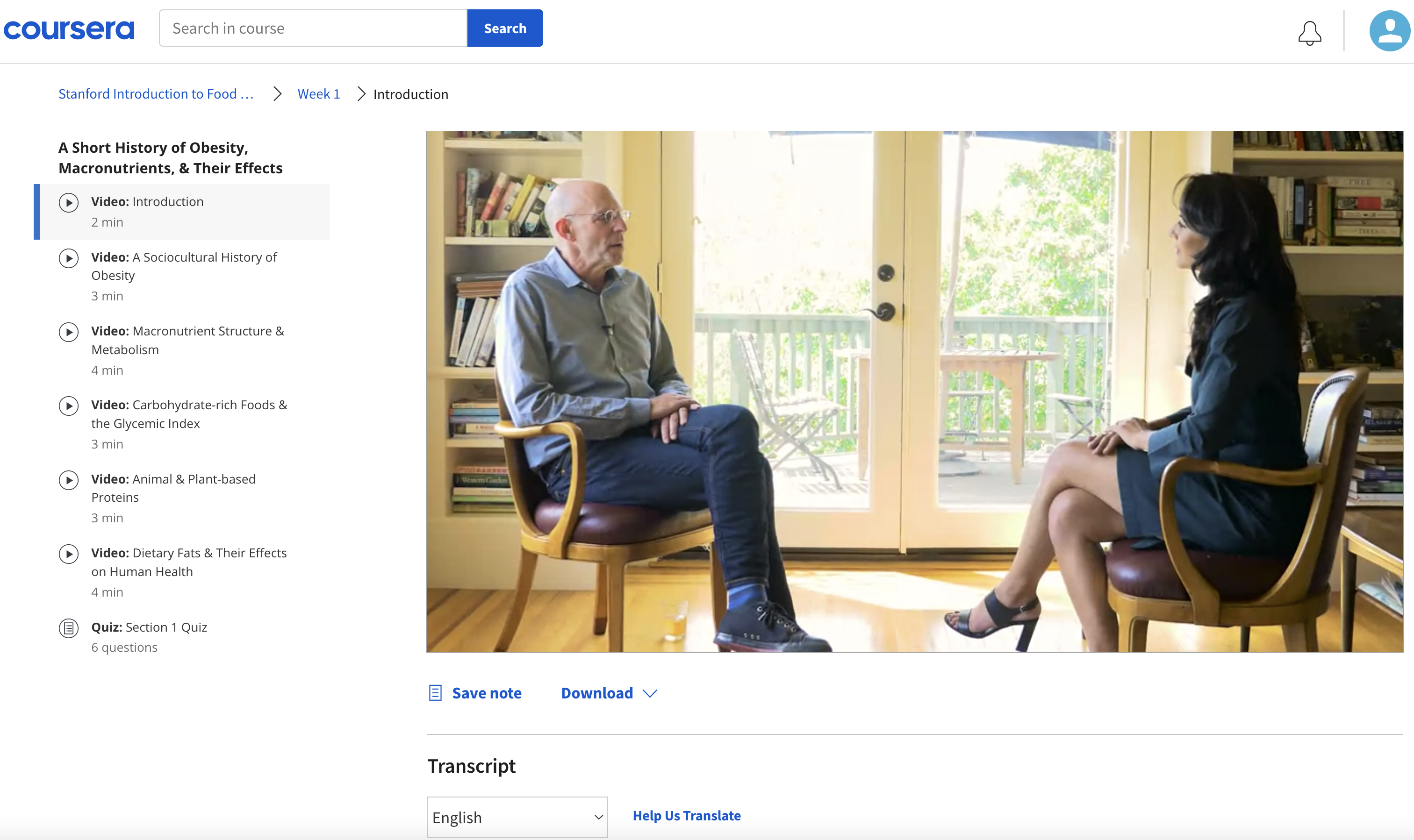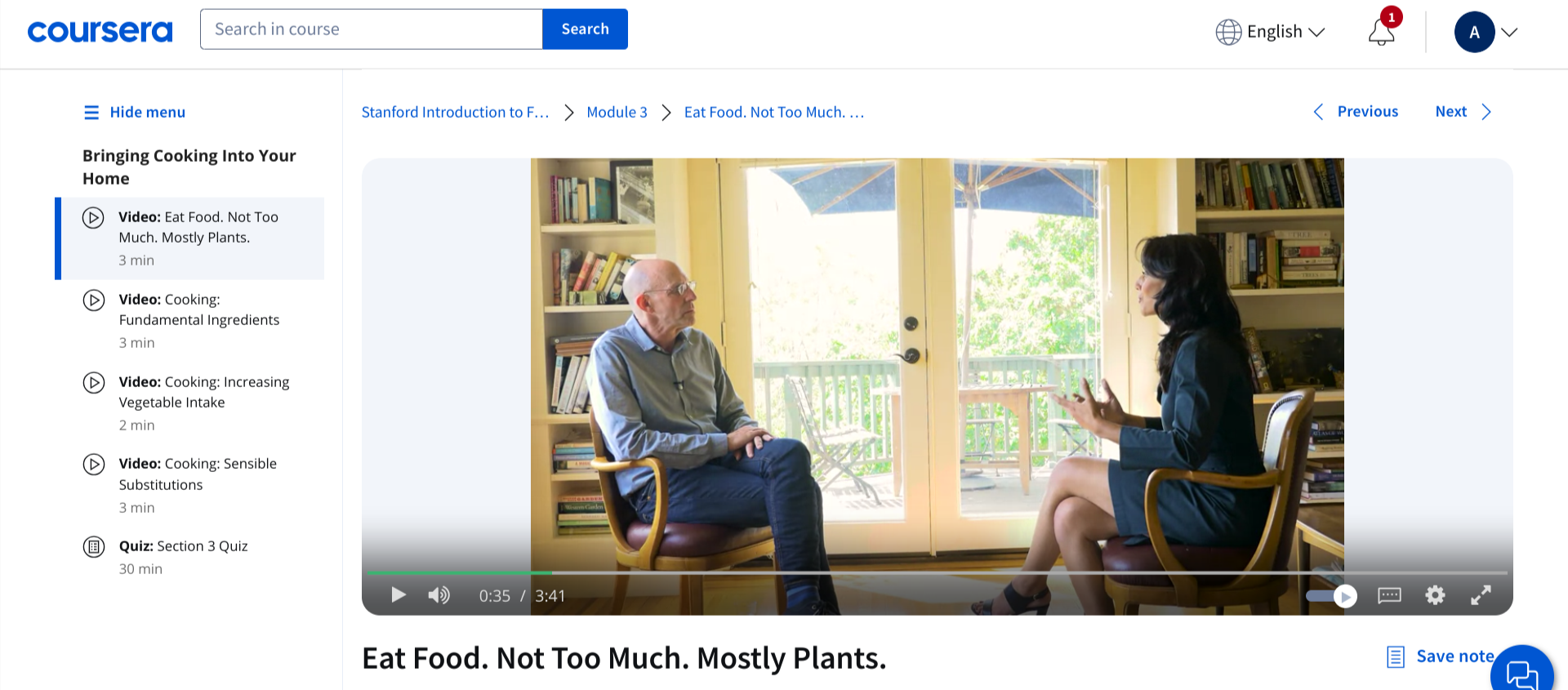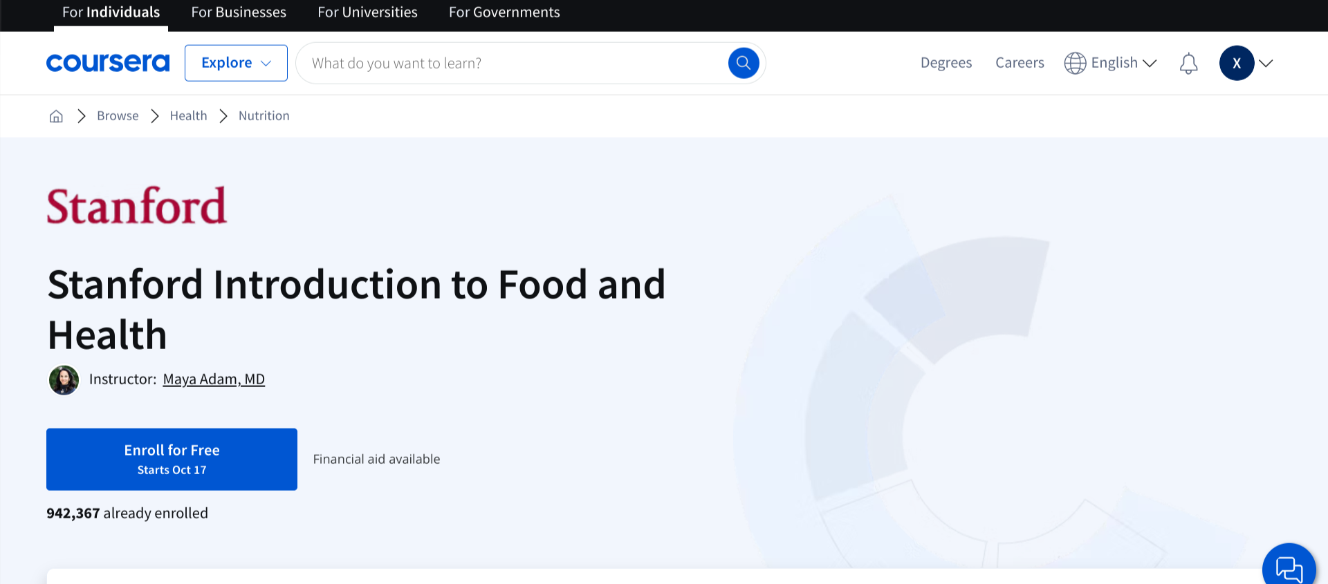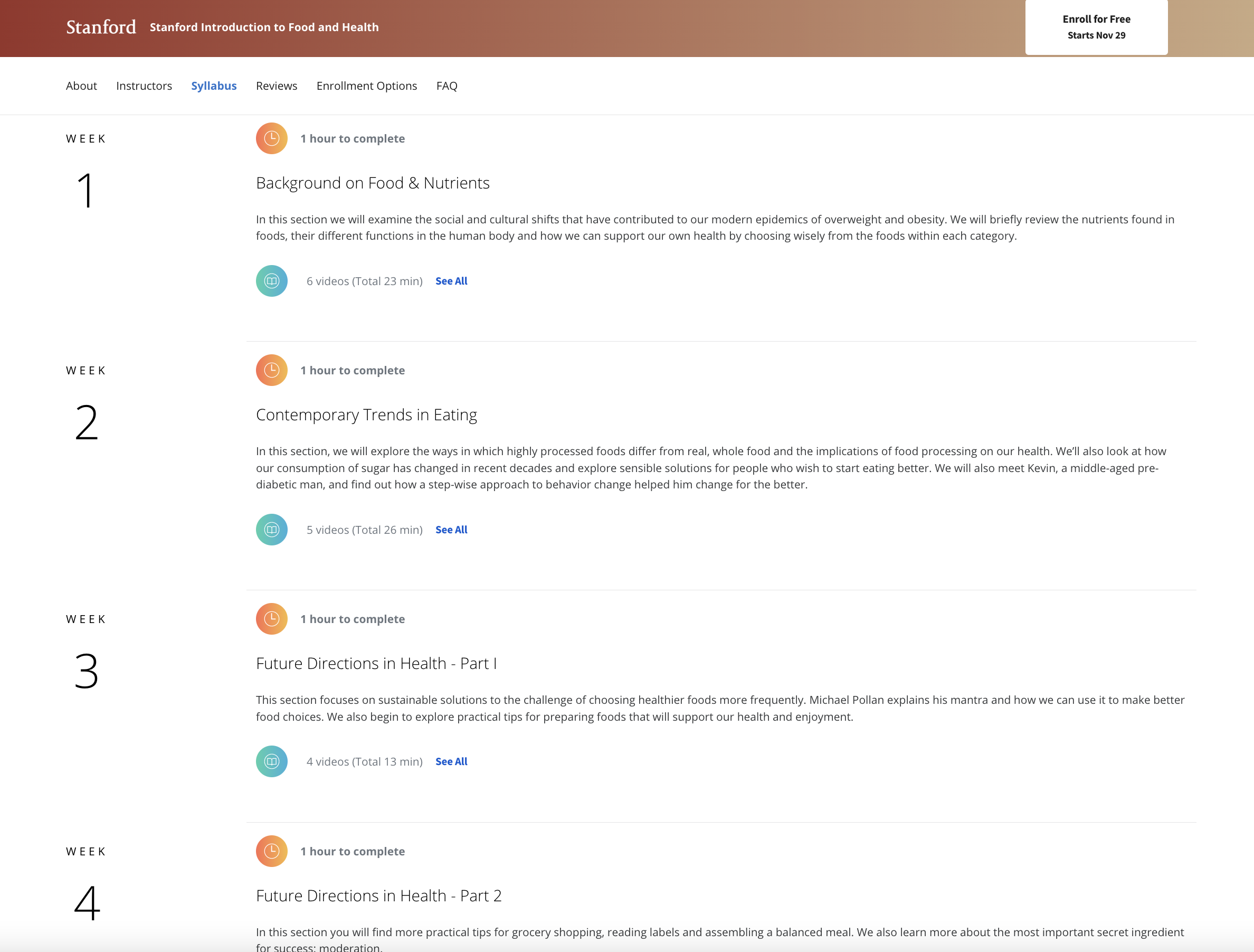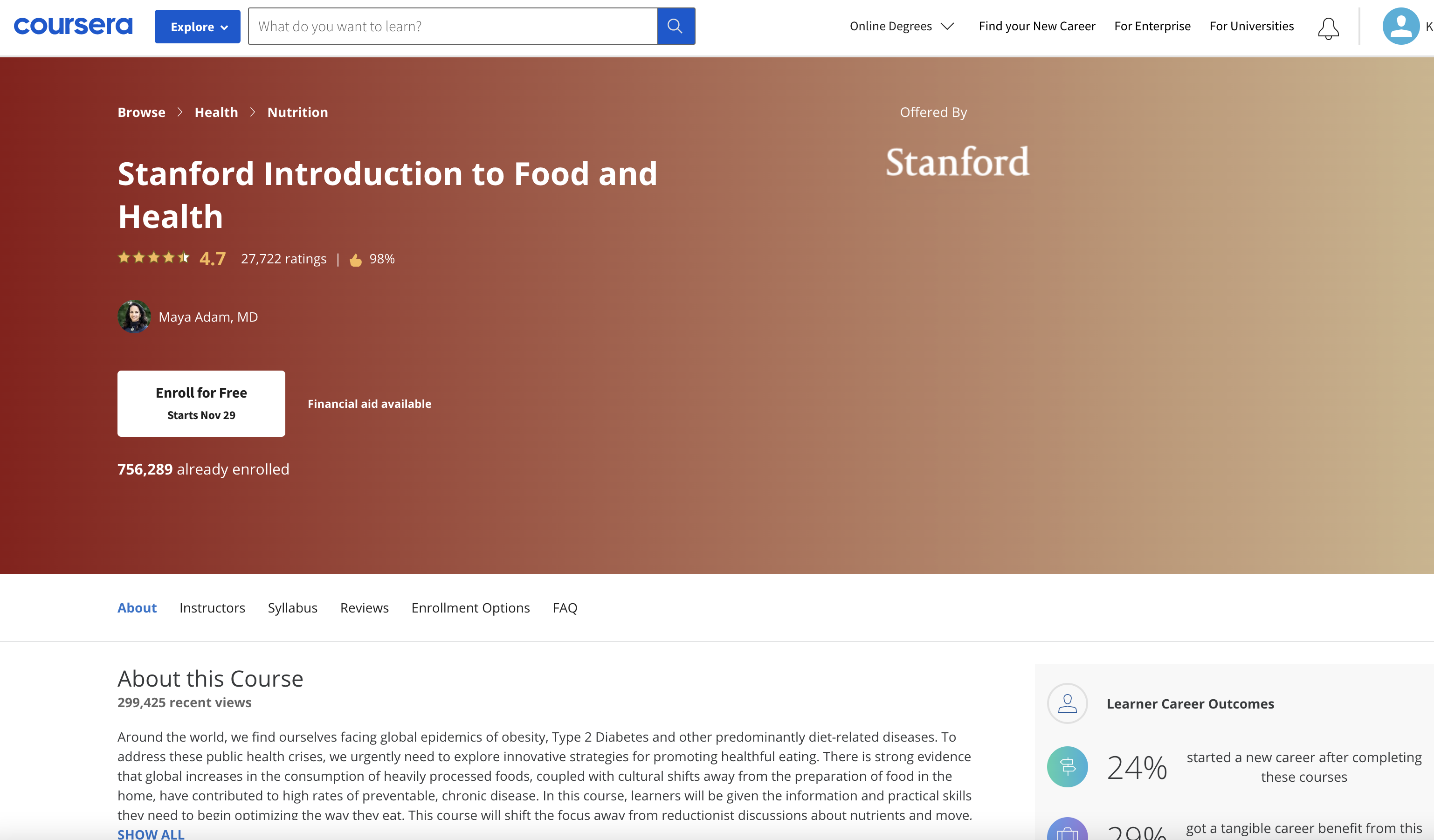- Stanford University via Coursera – Introduction to Food & Health — Best for Beginners