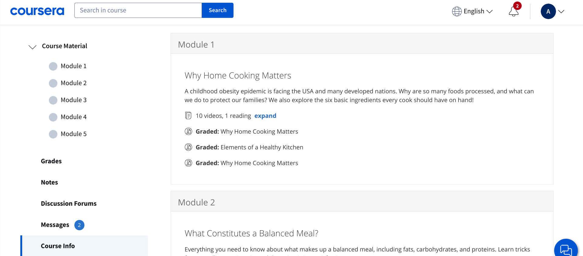 There are over 32,000 reviews from this course on its Coursera page, 80% of which are five stars. According to satisfied students, the course provides valuable fundamental knowledge about the relationship between food and health and preparing healthy meals. Reviewers also praised the course instructor’s engaging presentation style. However, others critiqued the course for being too basic and focusing too much on Western eating habits.