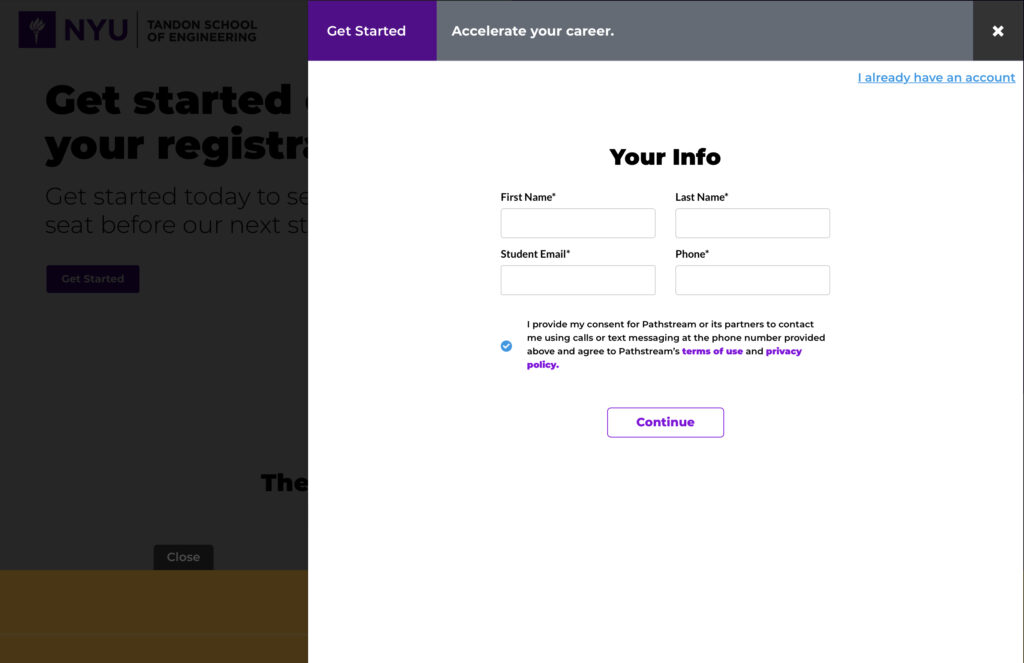 Signing up for a HubSpot Academy account is easy, with students answering a few questions about their industry, job title, and employer. Upon registration, students can immediately begin their course through HubSpot Academy’s simple, user-friendly learning interface.