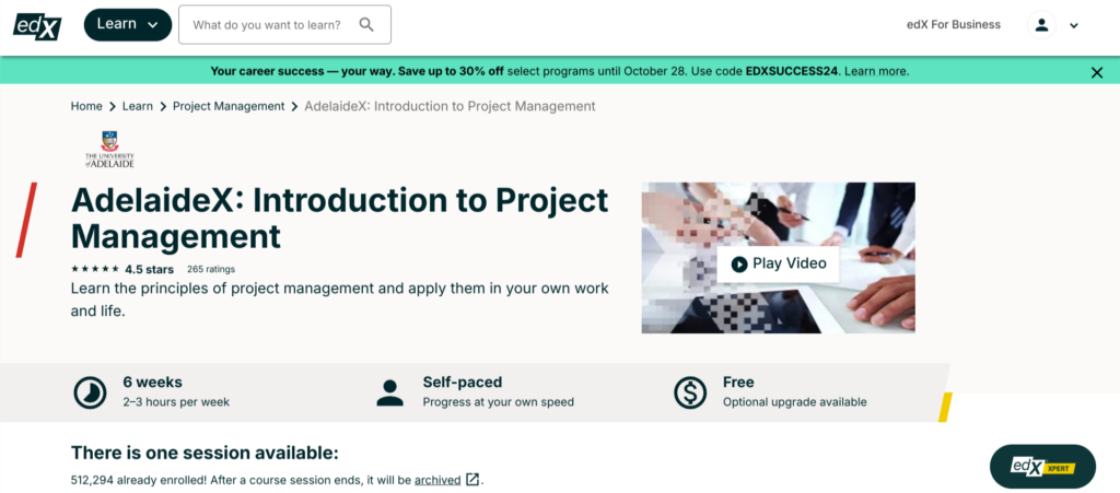 - edX — Introduction to Project Management by the University of Adelaide — Most Academic