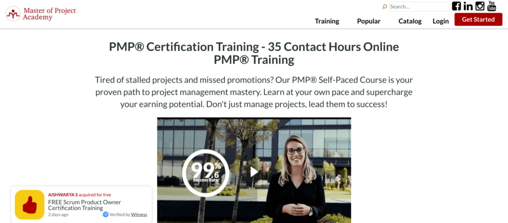 | Master of Project Academy — PMP Certification Training — Best for Career Advancement | $99 per month | ✓ No prerequisites required