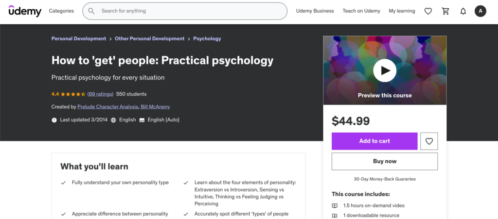 - Udemy — How to “Get” People: Practical Psychology — Shortest Course