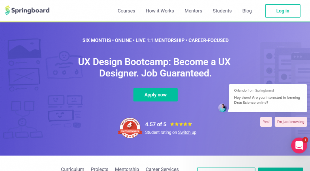 One of the best reasons to choose Springboard’s UX Design Bootcamp is that you’ll get unlimited access to a personal mentor. In addition to your weekly meeting with this industry expert, you can call them for advice and feedback as often as you want. Springboard will also help you prove your UX design skills to potential employers. This course includes hands-on experience that you can add to your portfolio as well as a capstone project and industry design project. And if you cannot land a UX design job within six months of completing this course, Springboard will give you your money back.