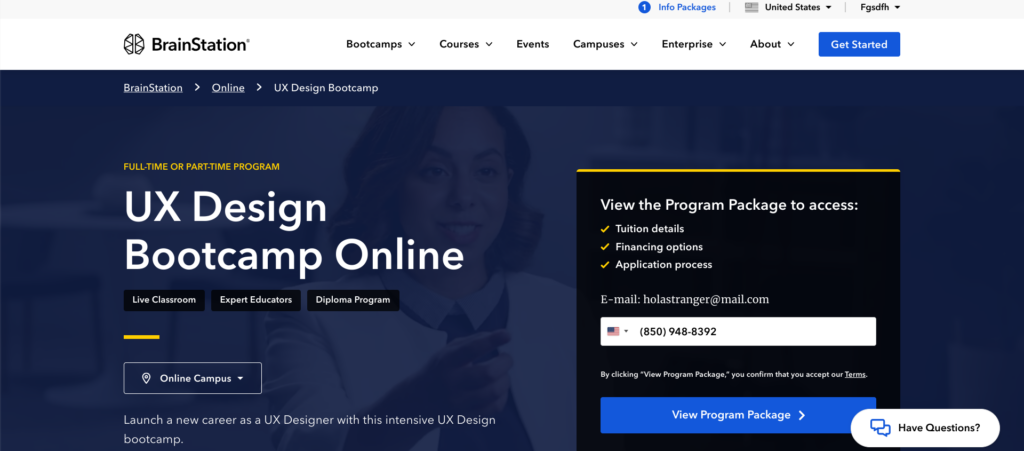 | BrainStation — UX Design Bootcamp Online — Best Job Placement Rate | $16,500 | ✓ No prerequisites required